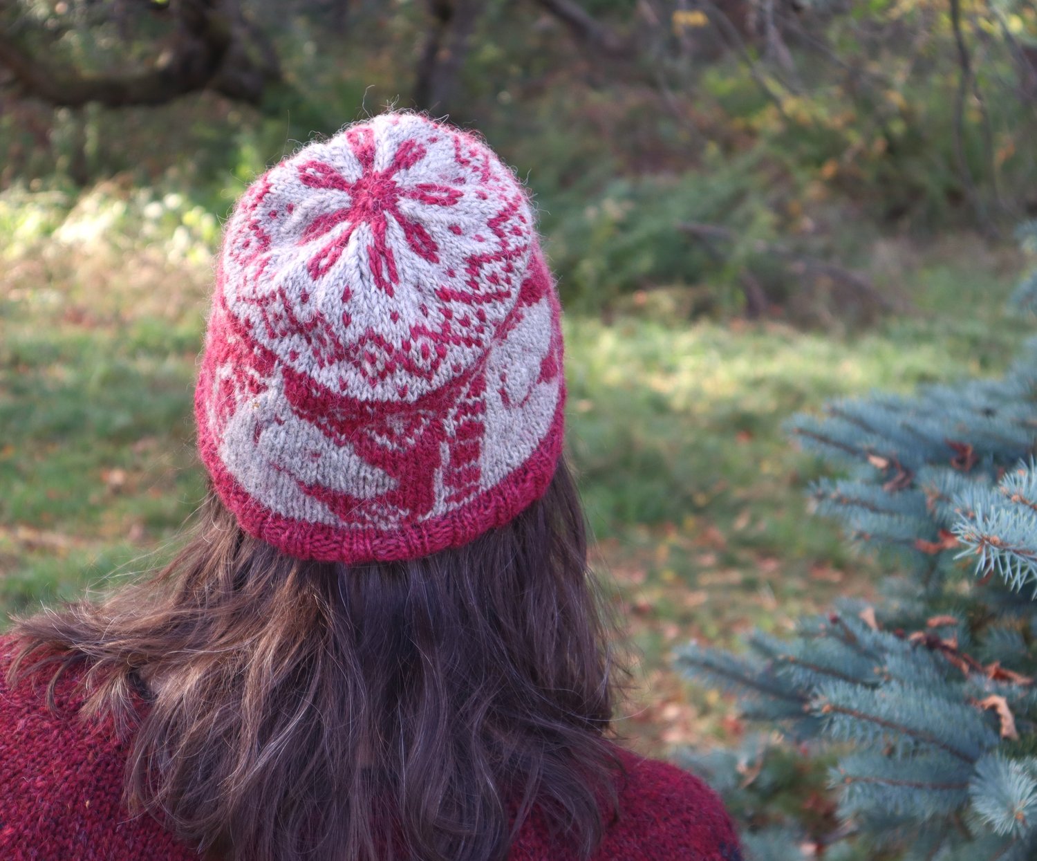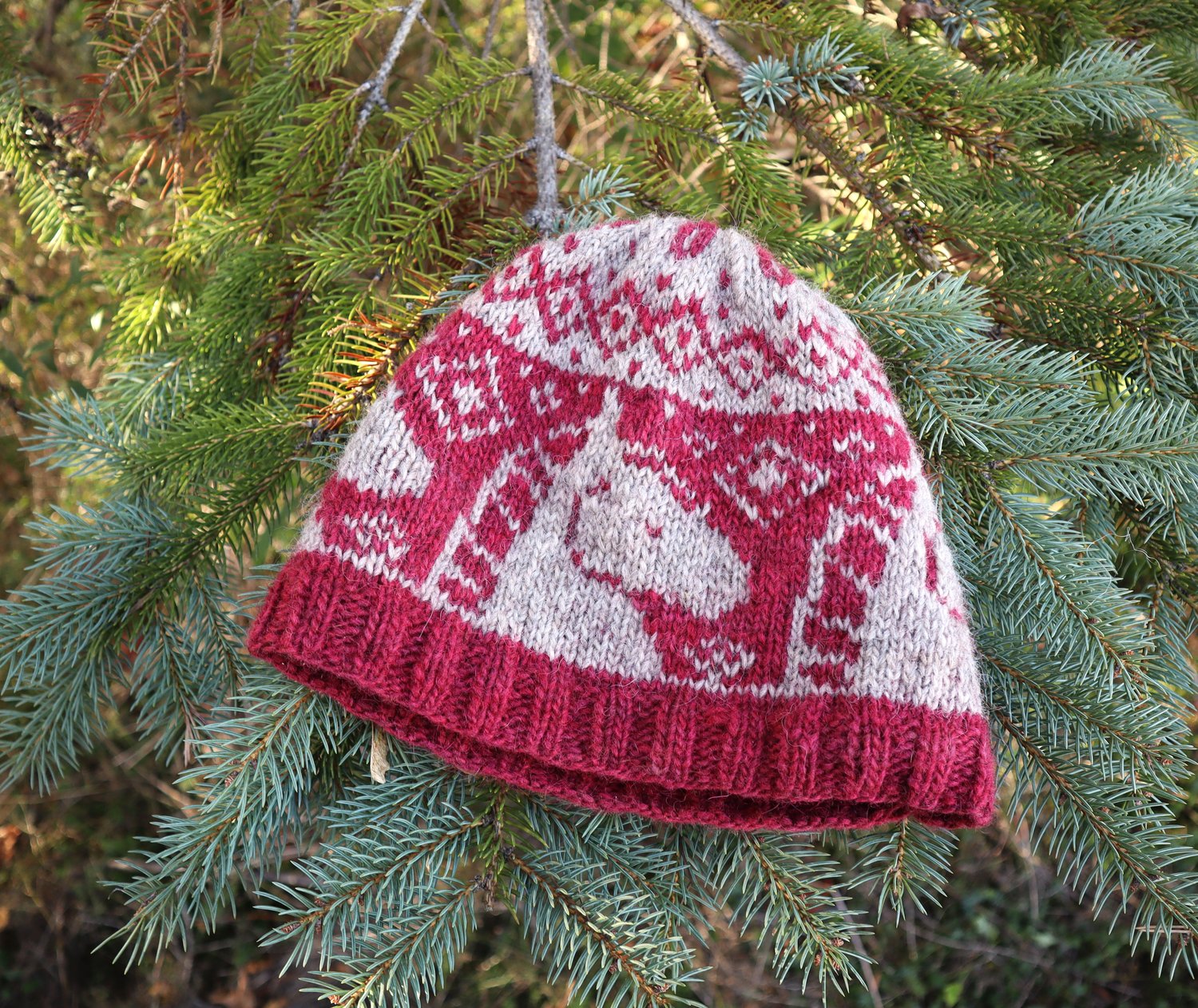 This is a pattern to knit a beanie worked using the stranded colourwork technique. It is worked from the bottom rib up with decreases shaping the crown.