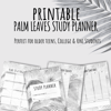 Monochrome Palm Leaves Printable Study Planner for College and University Students | INSTANT DOWNLOAD