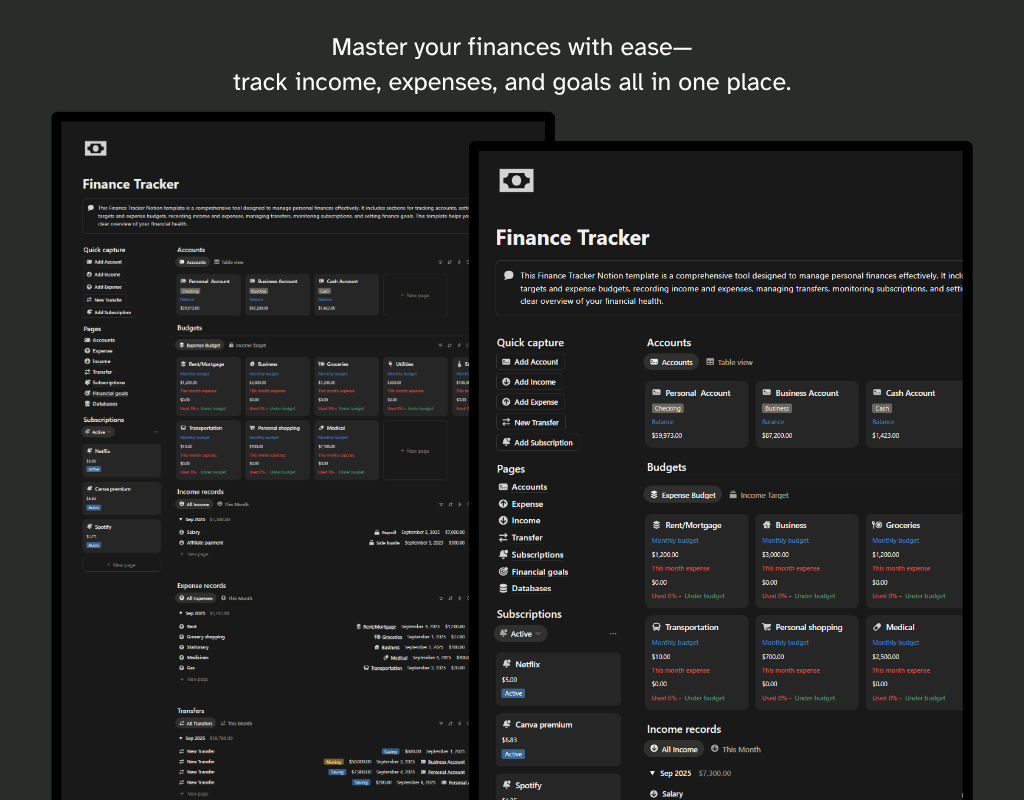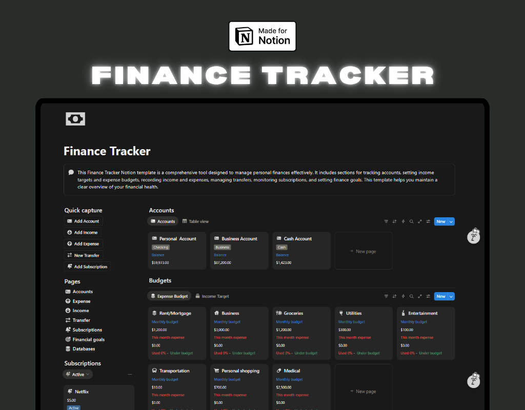 The Finance Tracker Notion template is your all-in-one solution for managing personal finances with precision.