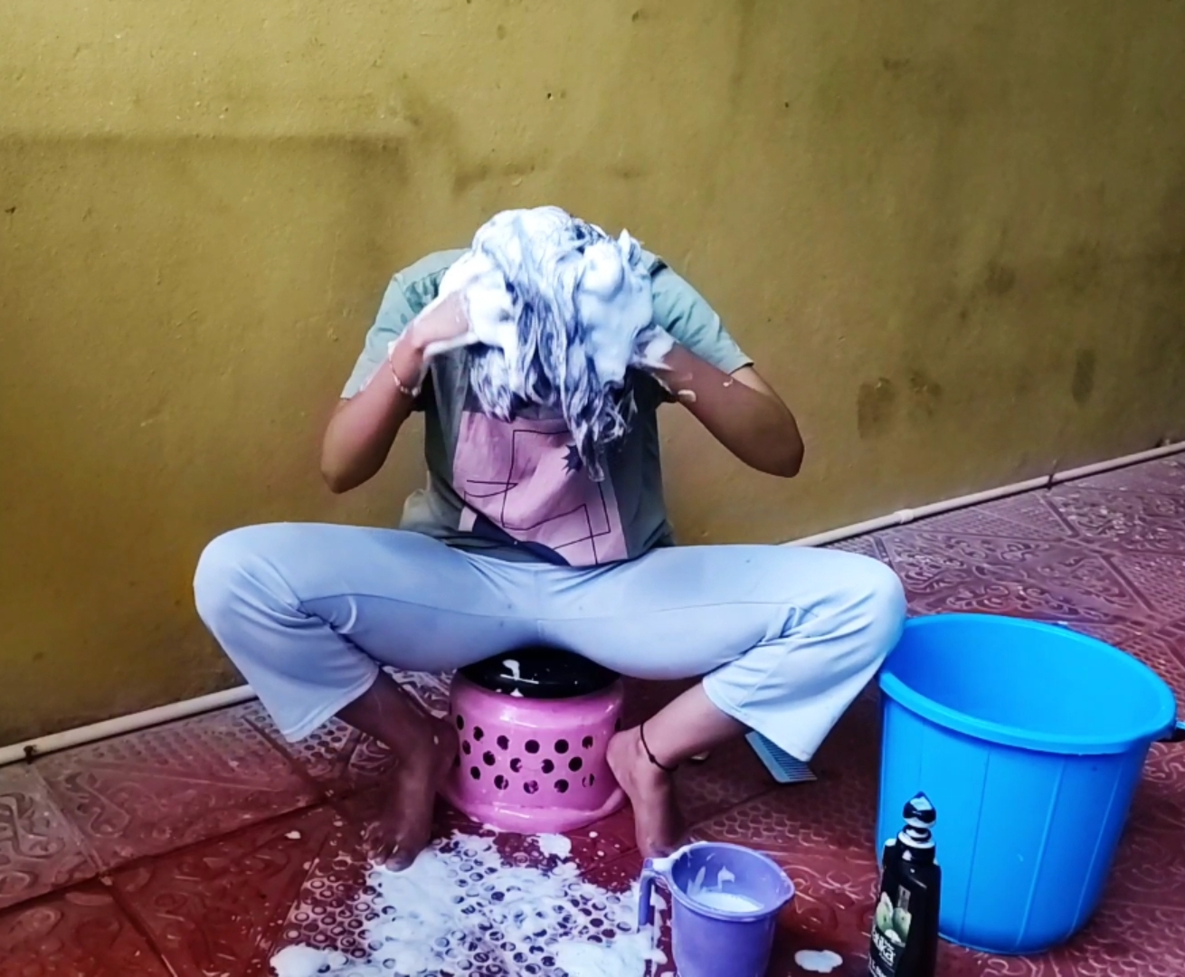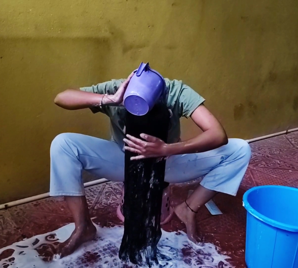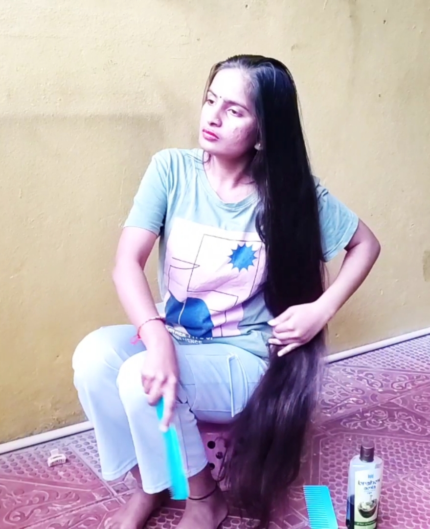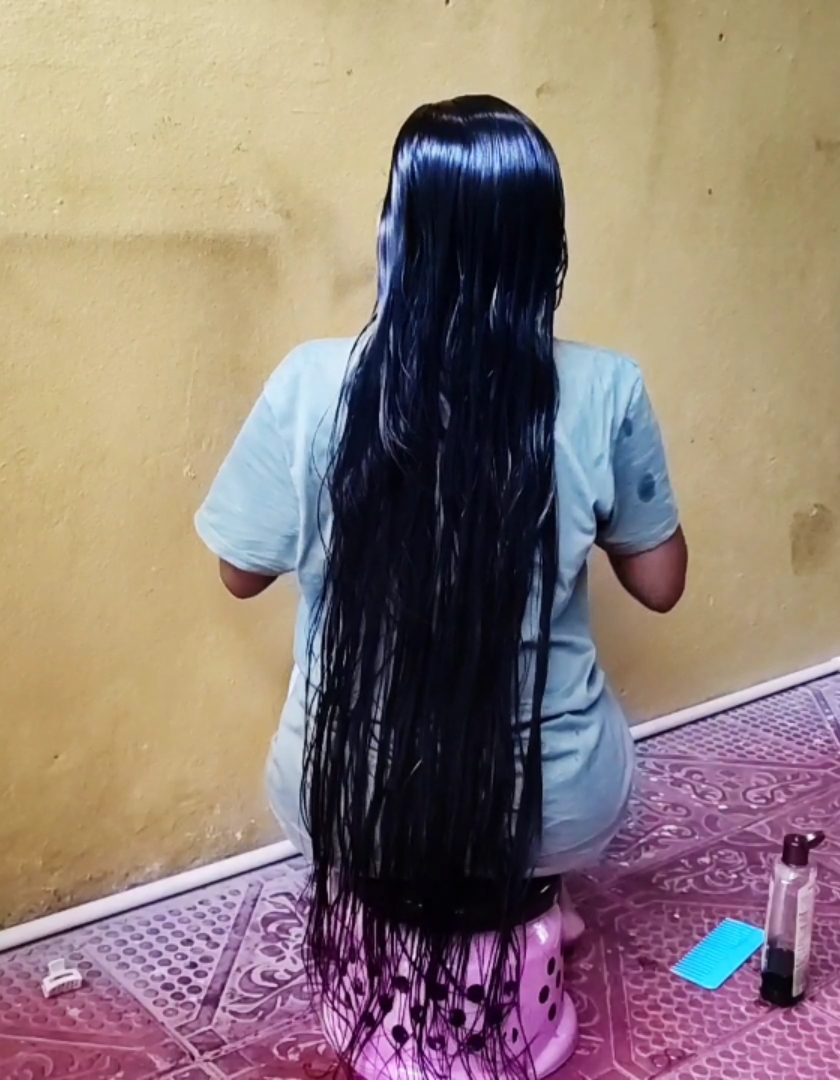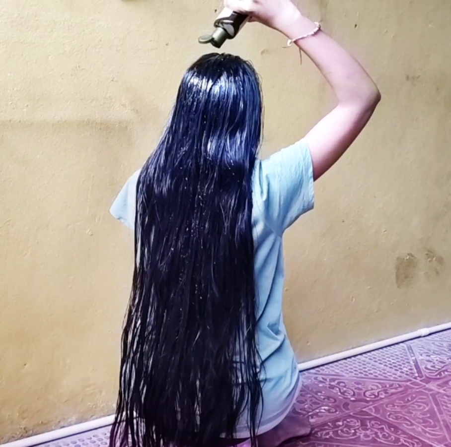 Longhair Oiling & Shampooing Hair over front face #combing #bun