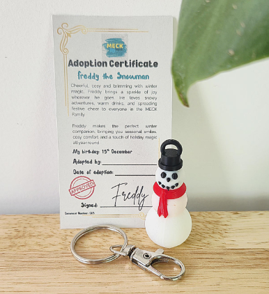 Meet Freddy the Snowman, a limited-edition member of the MECK Family, here to bring a sprinkle of festive magic to your keys, bags, or stockings.