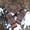 This is a pattern to knit a tammy, beanie, and mittens using the stranded colourwork technique. This pattern is intended for experienced knitters familiar with colour or symbol charts and basic shaping. The charts are shown with colour and symbols on the same chart.