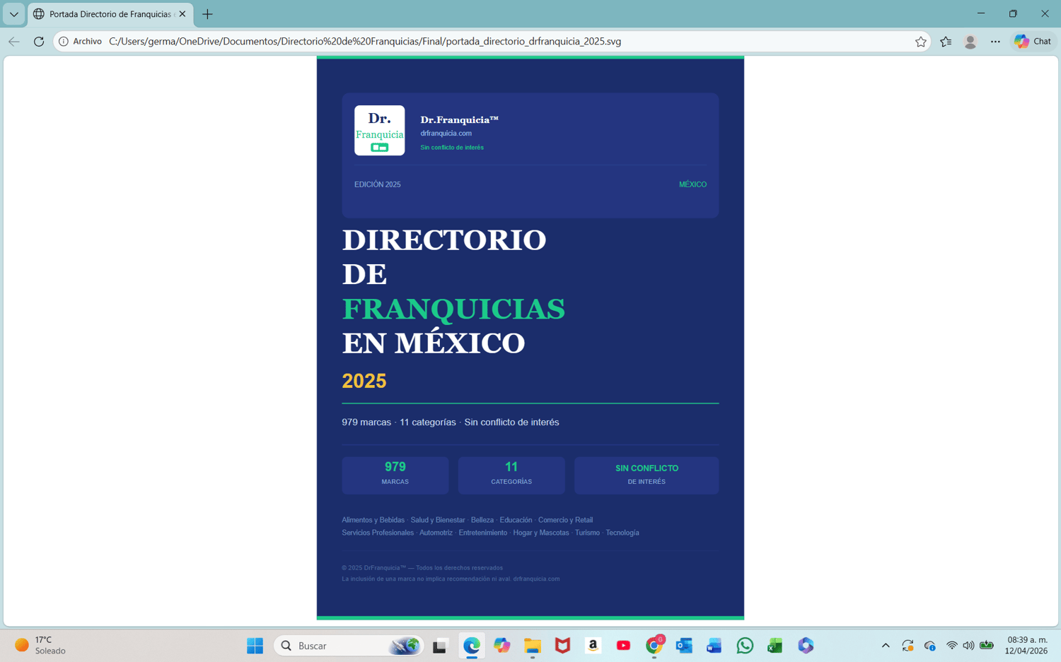 DIRECTORIO DE FRANQUICIAS EN MÉXICO 2025 979 marcas · 11 categorías · Sin conflicto de interés