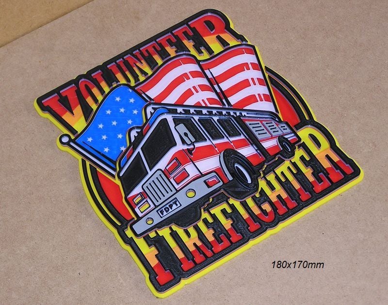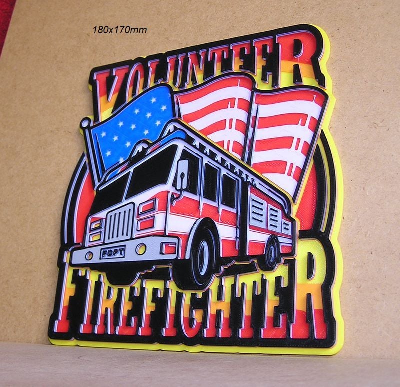 Fire truck Poster, Sign, Logo of the firefighters, these STL and Gcode files have been created to be printed in various colors with any FDM type printer. The color changes have been made with the Elegoo Neptune 3 Pro printer, but they can be printed on any printer.