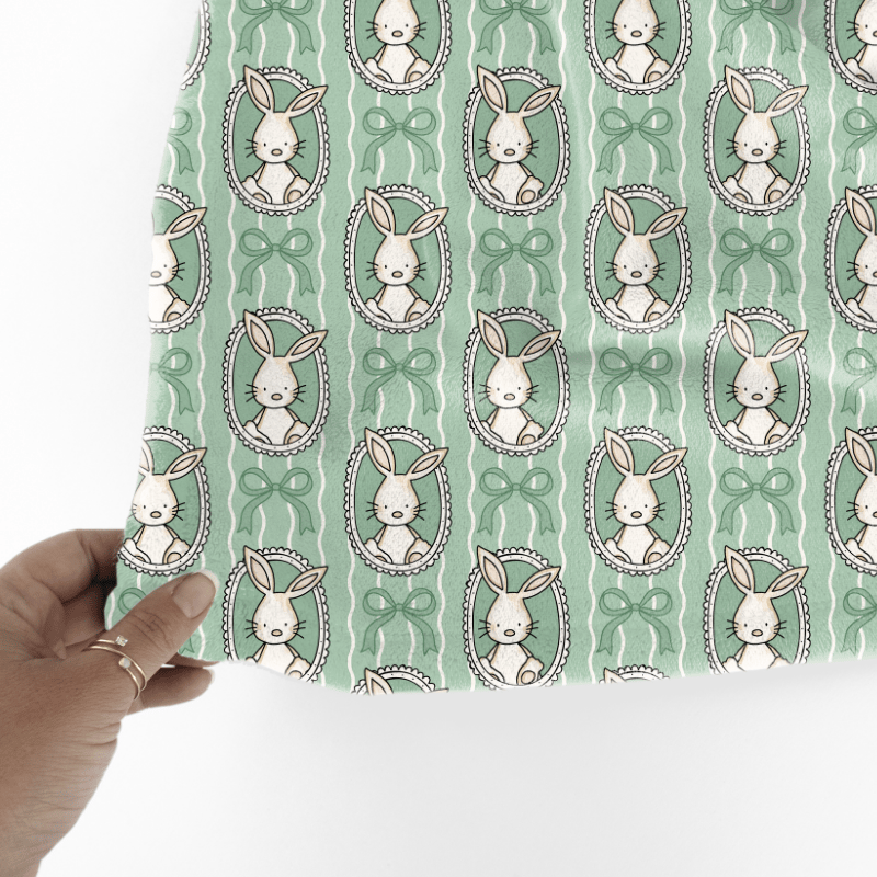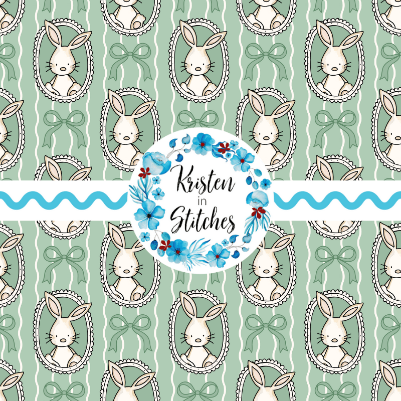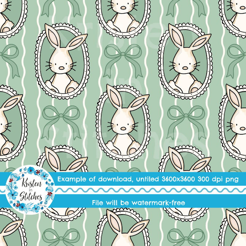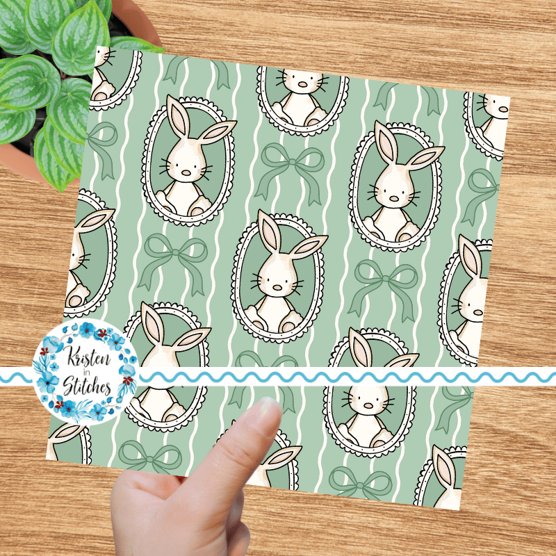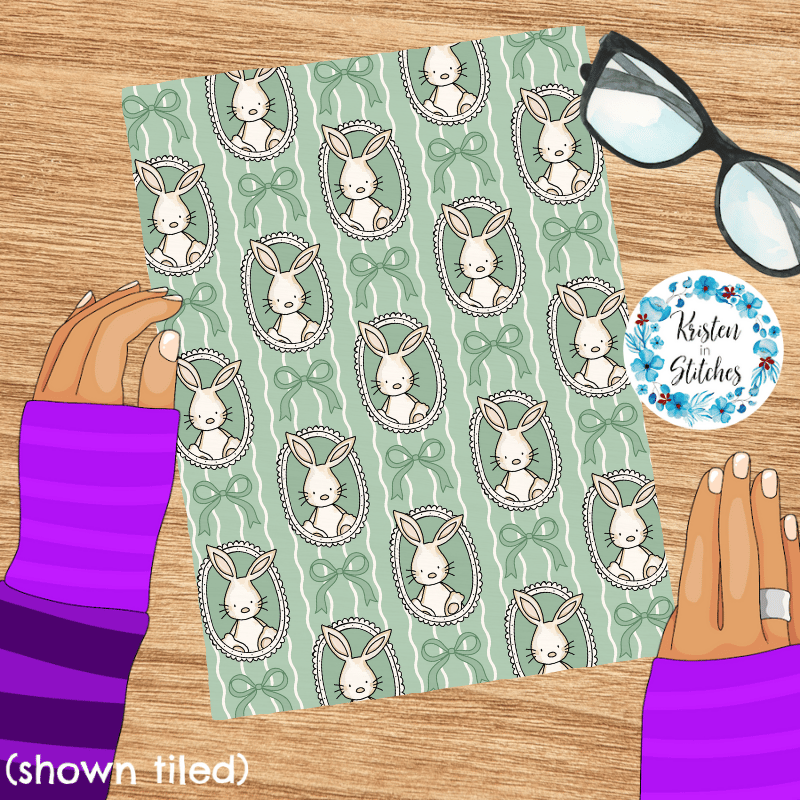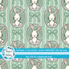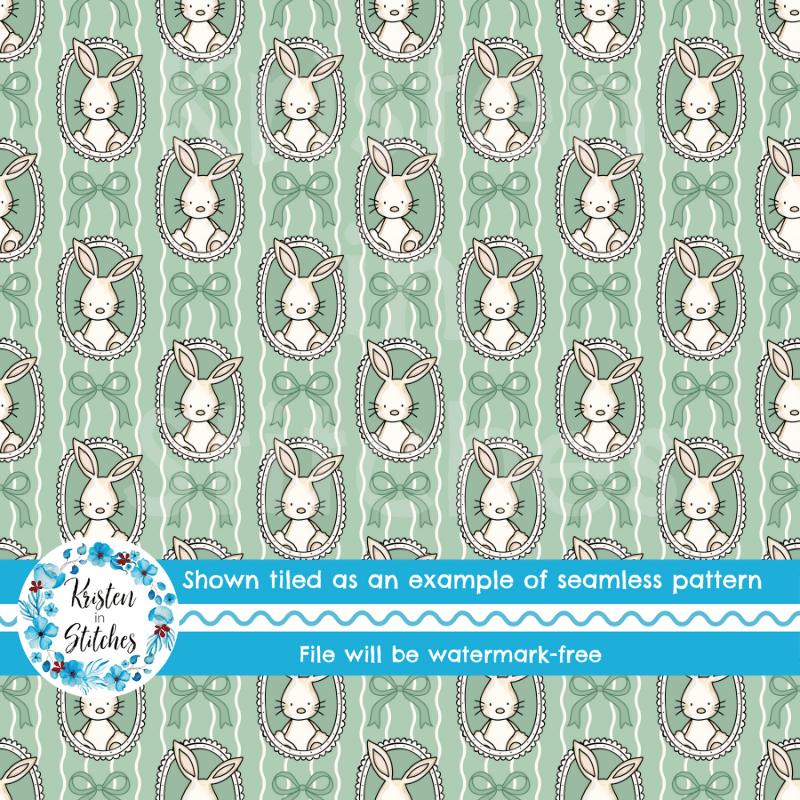 Spring Bunnies and Bows Photo Wall Picture Frames Seamless Pattern, Easter Bunny Rabbits in Green