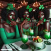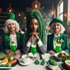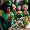 Emerald Unity depicts a group of black women dressed in vibrant green attire, celebrating St. Patrick's Day with friends of different ethnicities. Their smiles reflect the joy of unity and diversity, set against a backdrop of shimmering green hues. This digital art piece celebrates the beauty of cultural fusion and the shared spirit of celebration.