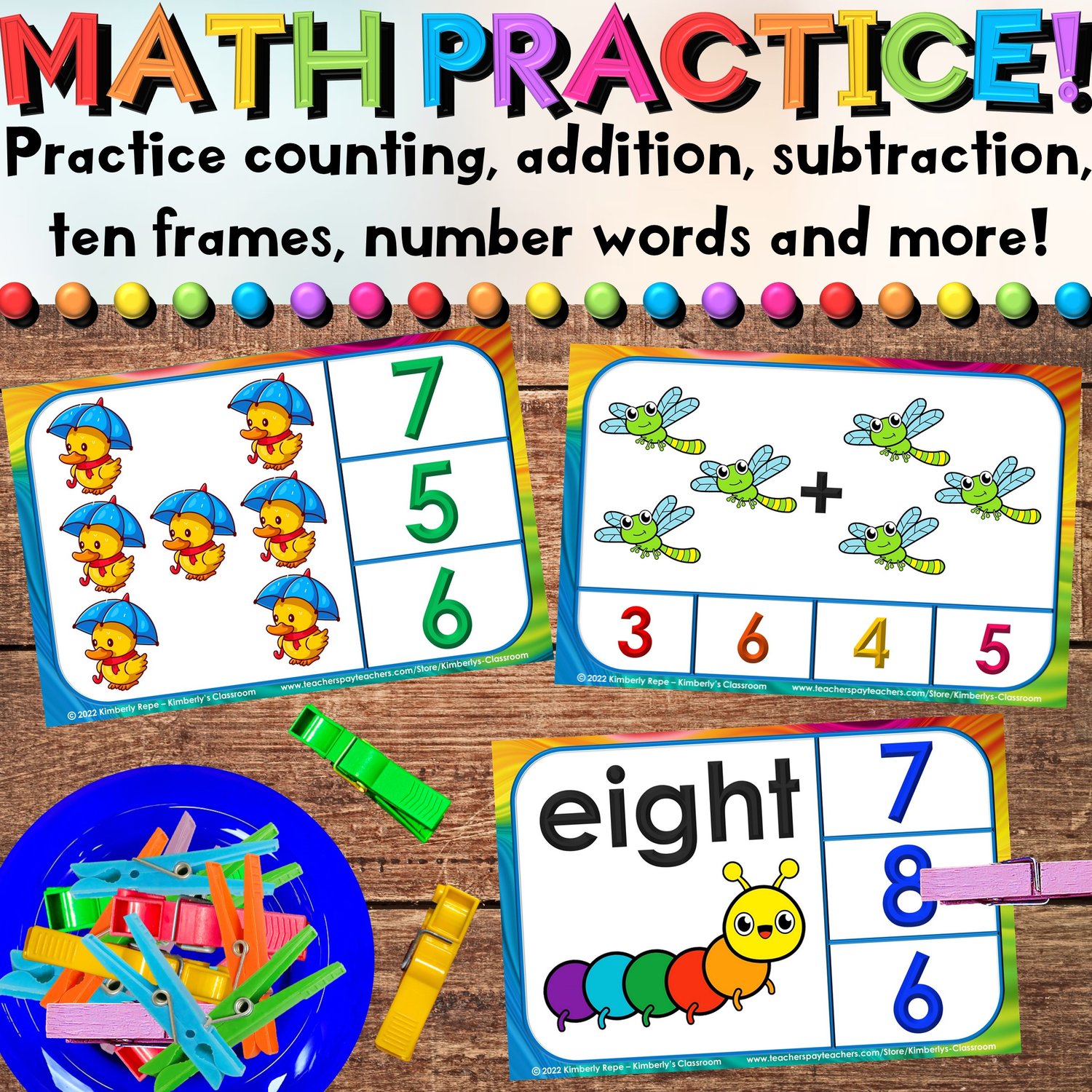 ⭐️Students can show their answers using clothespins, mini erasers, pom poms, bingo chips, cubes, play-dough, dry-erase markers, stickers, etc.!