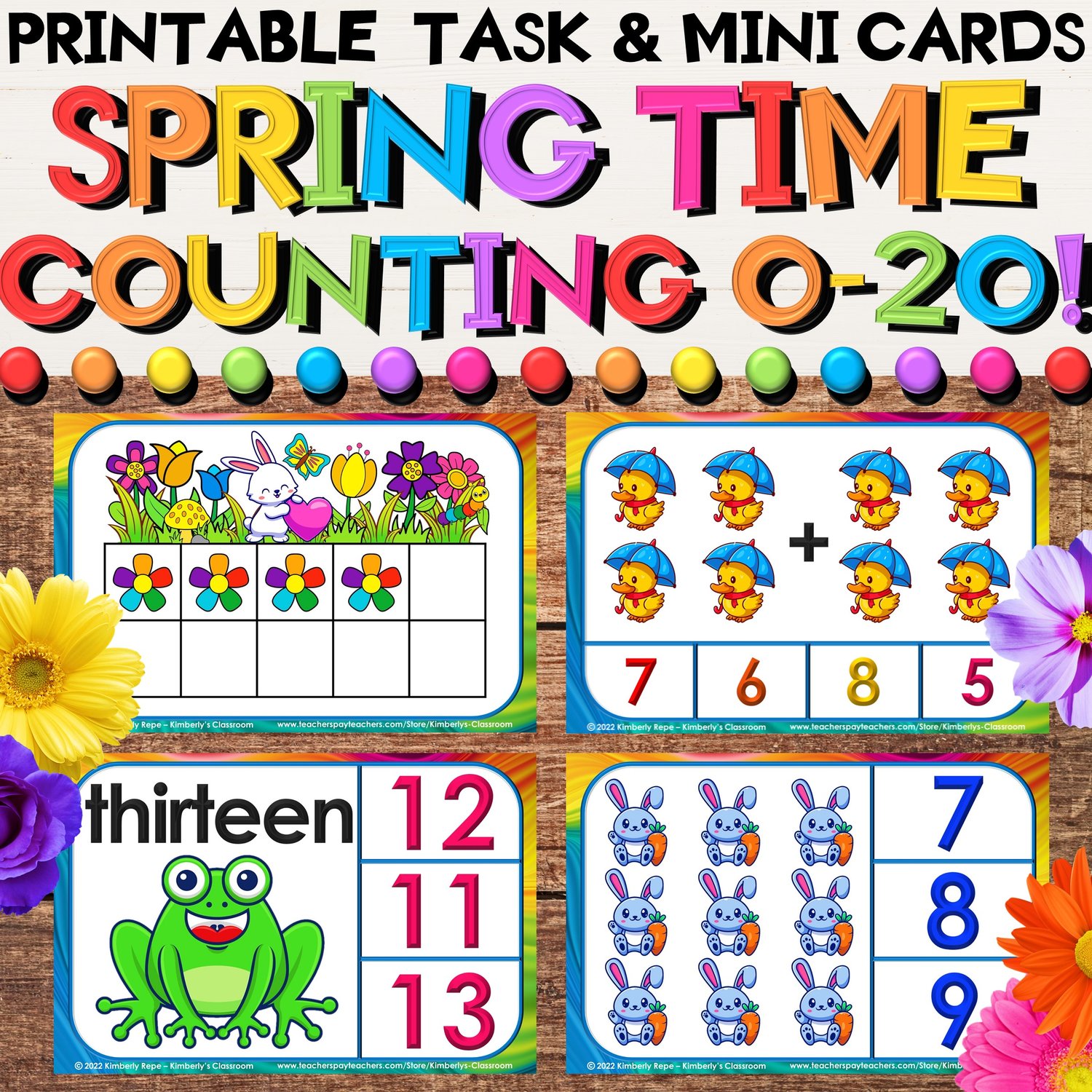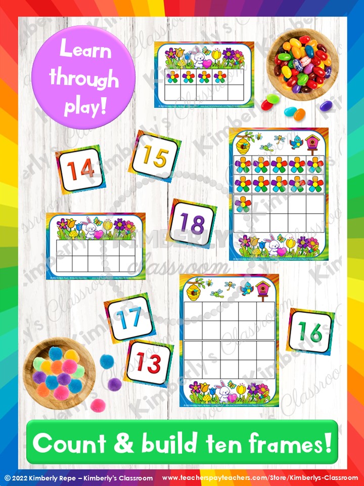 ❤️These spring garden task cards are the perfect way to help your students practice counting, addition, subtraction, counting ten frames, building ten frames, number words, and one-to-one correspondence!
