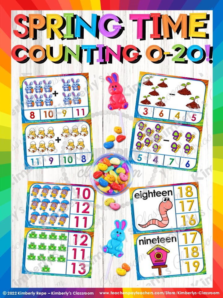 Spring Counting to 20 Math Task Card Centers - Ten Frames Addition Subtraction