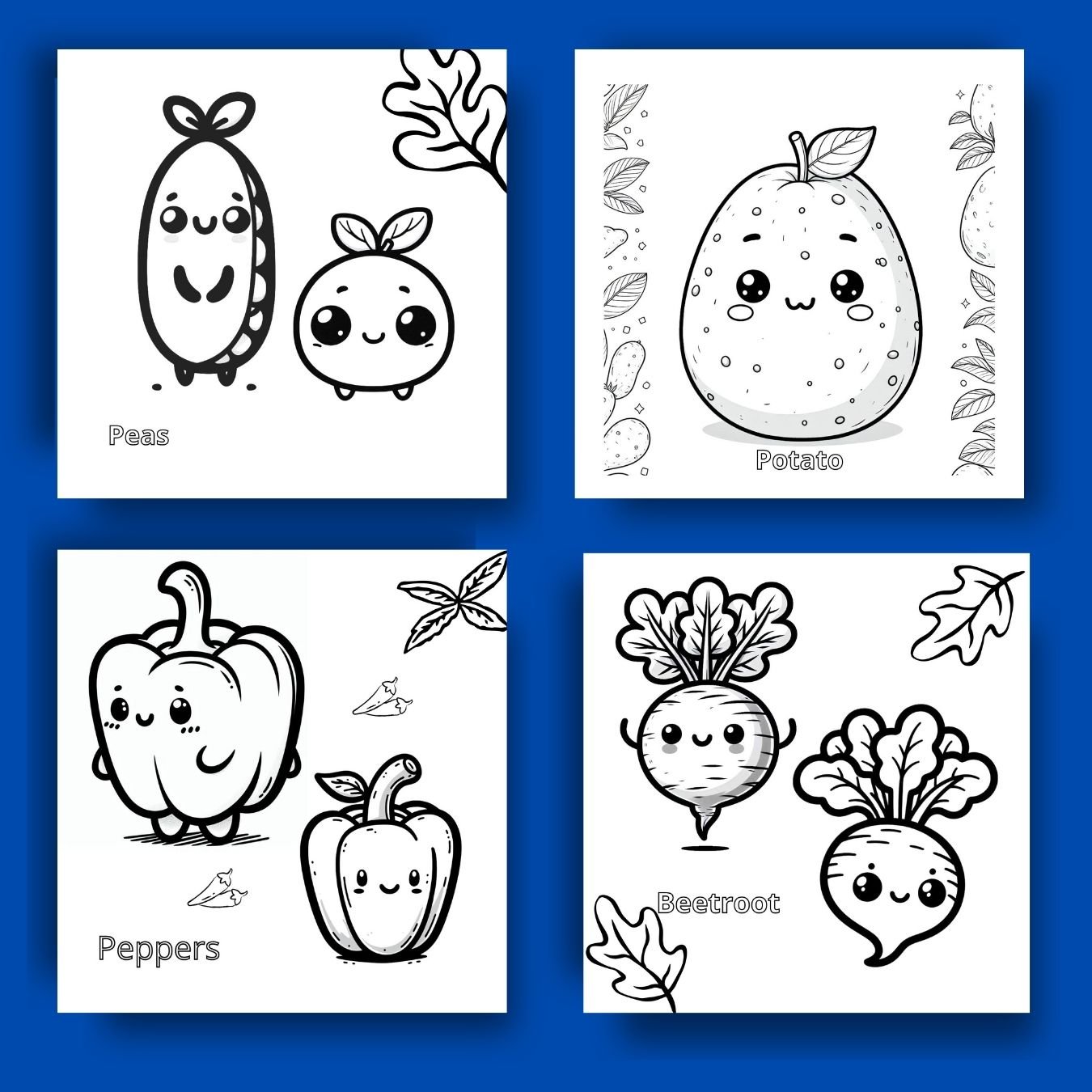 12 Vegetable Coloring Pages / Digital Coloring Book / Instant Download