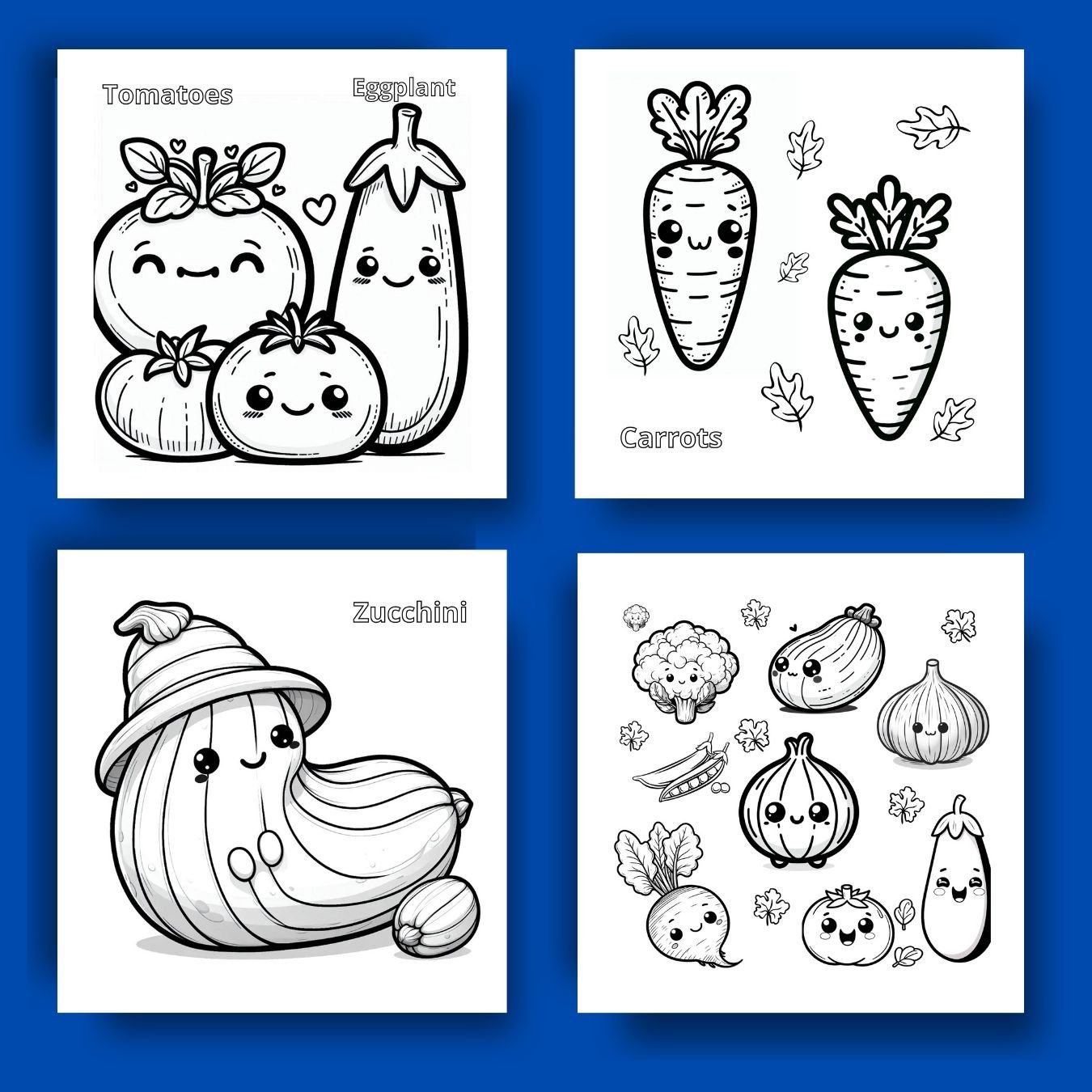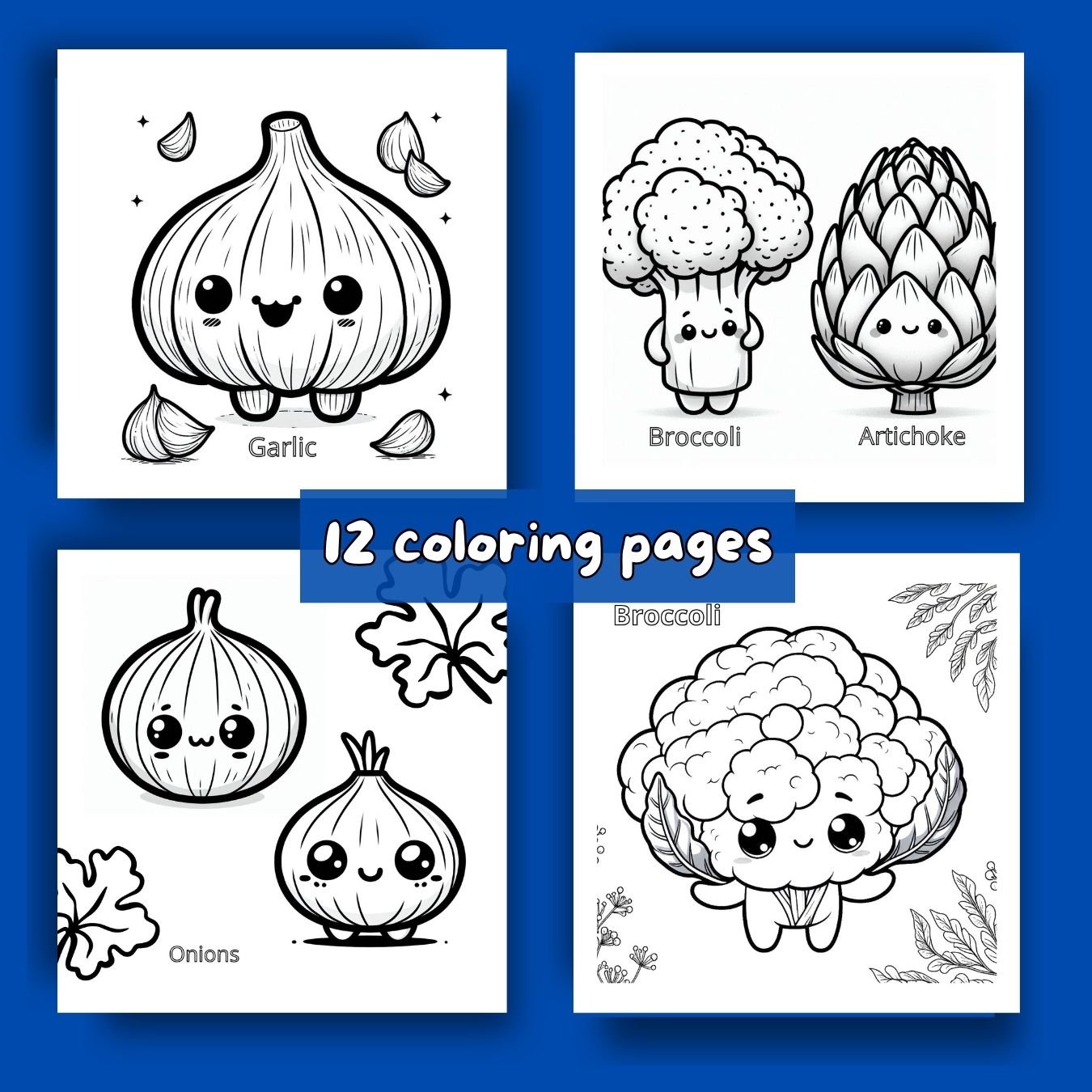 12 Vegetable Coloring Pages / Instant Download