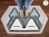 • Sewing with a 1/4" seam allowance, log cabin piecing, using a 60 degree corner trimmer or printable template, basic quilting skills, binding (optional)