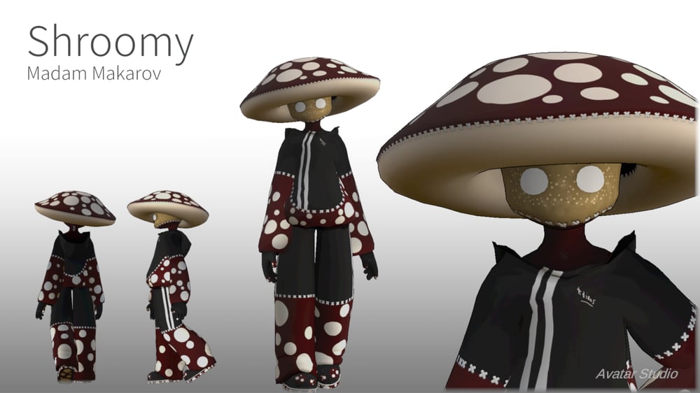 Shroomy was part of a dream i had a while back it was so good i had to create him․ i was stuck in a mushroom forest and this charasmatic lil dripped up shroom boy guided me outside of my dream․ it was crazy.