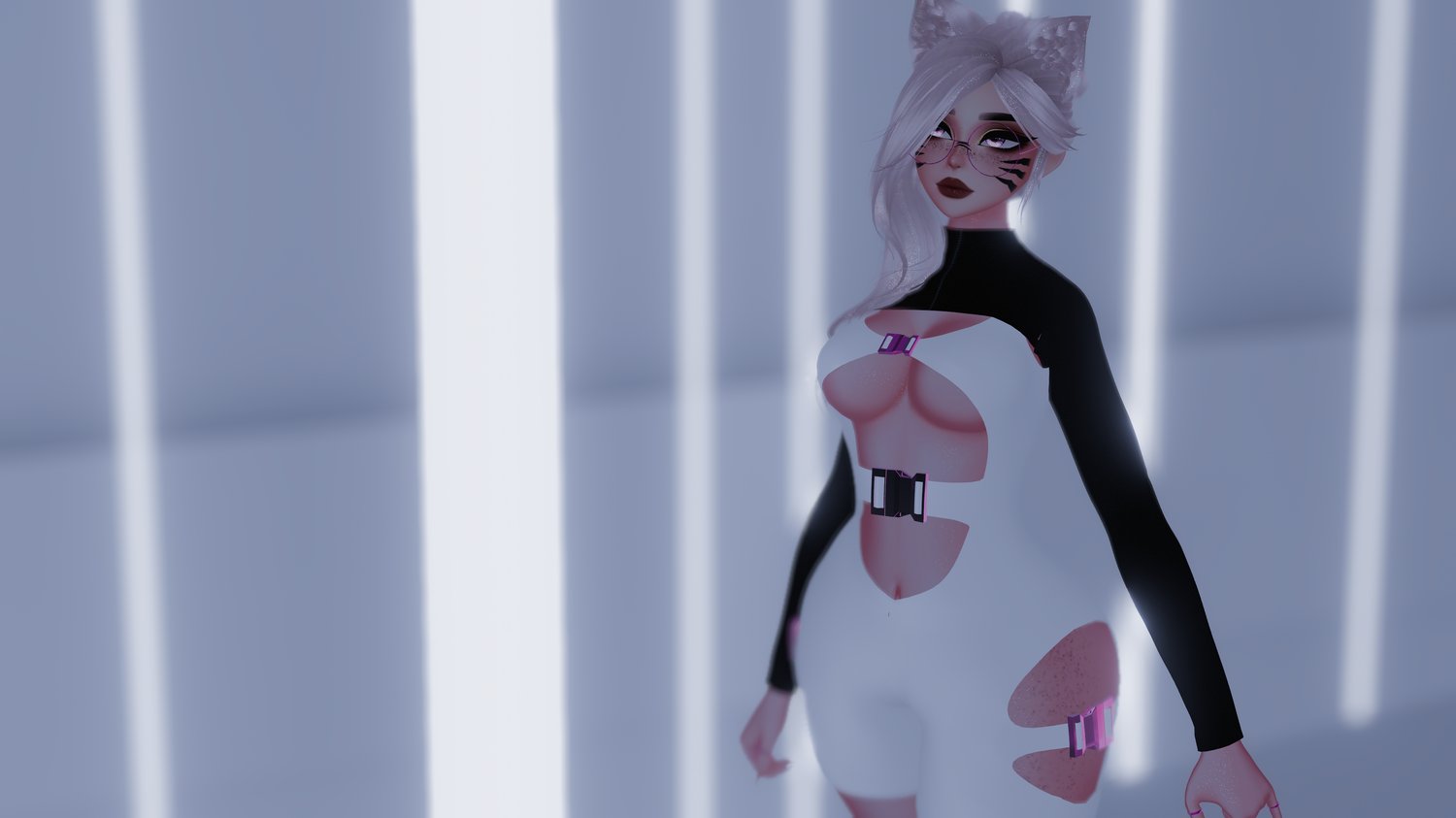 | Body by Pandaabear#9873 (EDITED BY ME, NO REUSE) | Head/Head Textures by DUCC#0008 (EDITED BY ME, NO REUSE) | Main Body Texture and Face Stripes by Ying#6669 (EDITED BY ME, NO REUSE) | Hair Textures by Cicieaaa#7777 | Fake Index by Milkers~#4457 | VRCFury Tool | GoGoLoco by Franada | Rings by xSnail#2902 | Hair by @NESSYY. | Outfit by cakie.exe | Boots by Gashina | Glasses by Moon Jelly | Ears by Love (Nitro)
