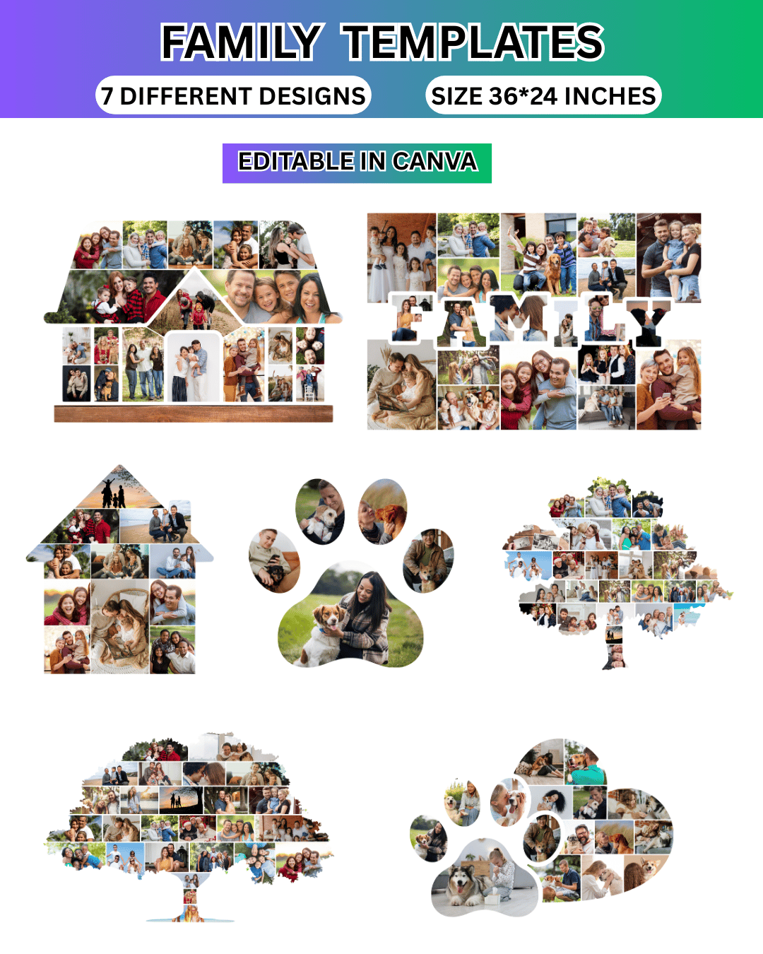 7 different Family Photo Collage Template Bundle | Instant Digital Download