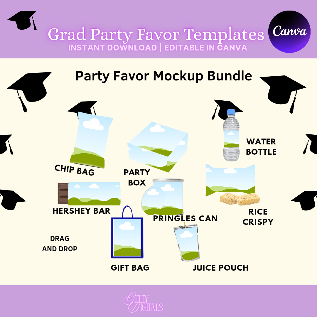 🎓 Graduation Party Favor Bundle + Mockup Templates (Editable in Canva) 🎓