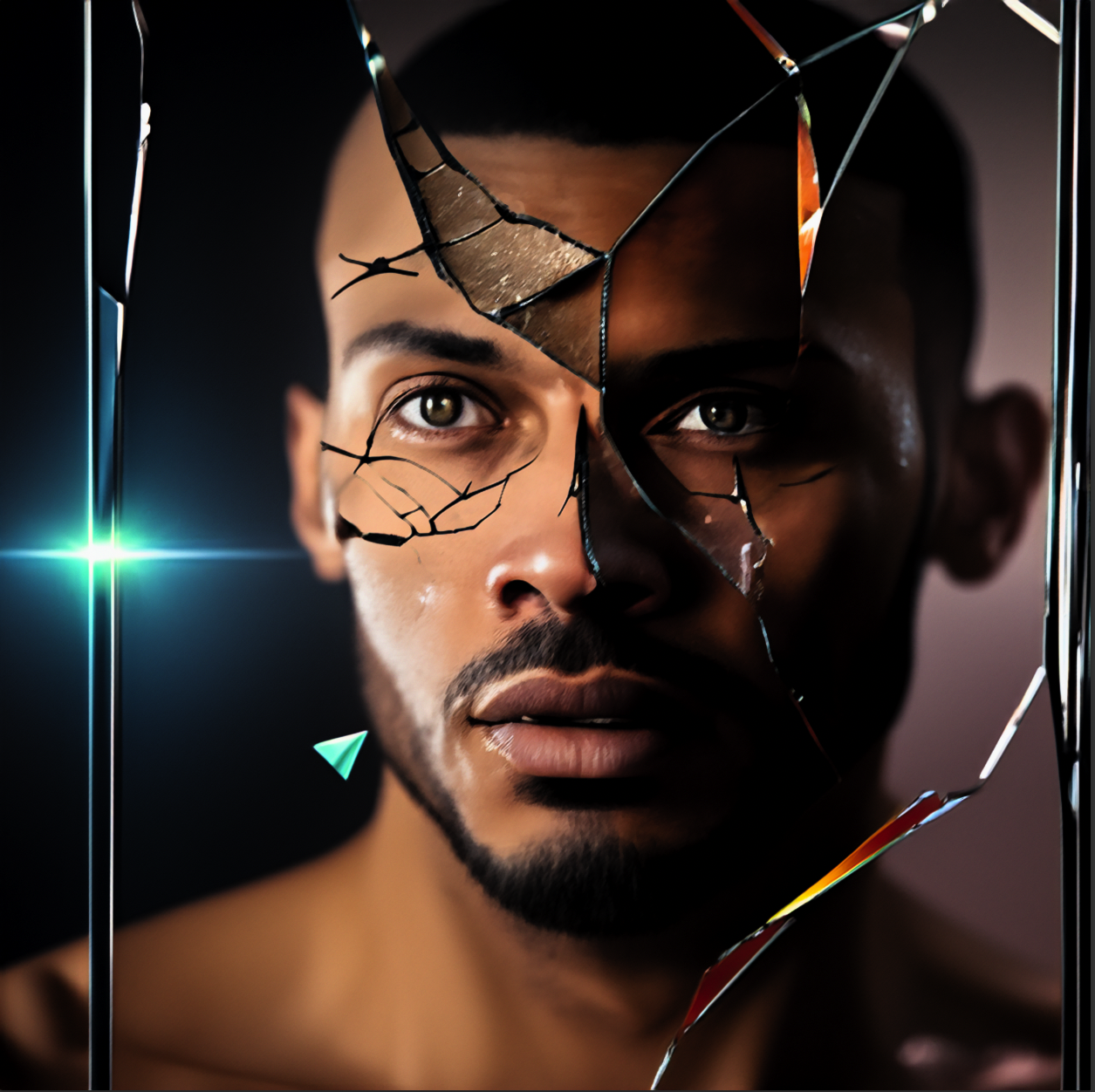 The work invites the viewer to ponder the complex relationship between the physical and the metaphysical. The fragmented mirror, a symbol of the shattered soul, is juxtaposed with a kaleidoscope of abstract forms and surfaces, hinting at the deeper emotional and spiritual implications of this superstition.