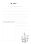 Met 90 inspirerende pagina’s en leuke werkbladen is dit werkboek jouw persoonlijke gids om kristallen een blijvende plek in je leven te geven. Of je nu meer wilt weten over specifieke kristallen, hun eigenschappen, of hoe je ze kunt gebruiken voor heling en harmonie, dit werkboek biedt ruimte om jouw inzichten en ervaringen vast te leggen.