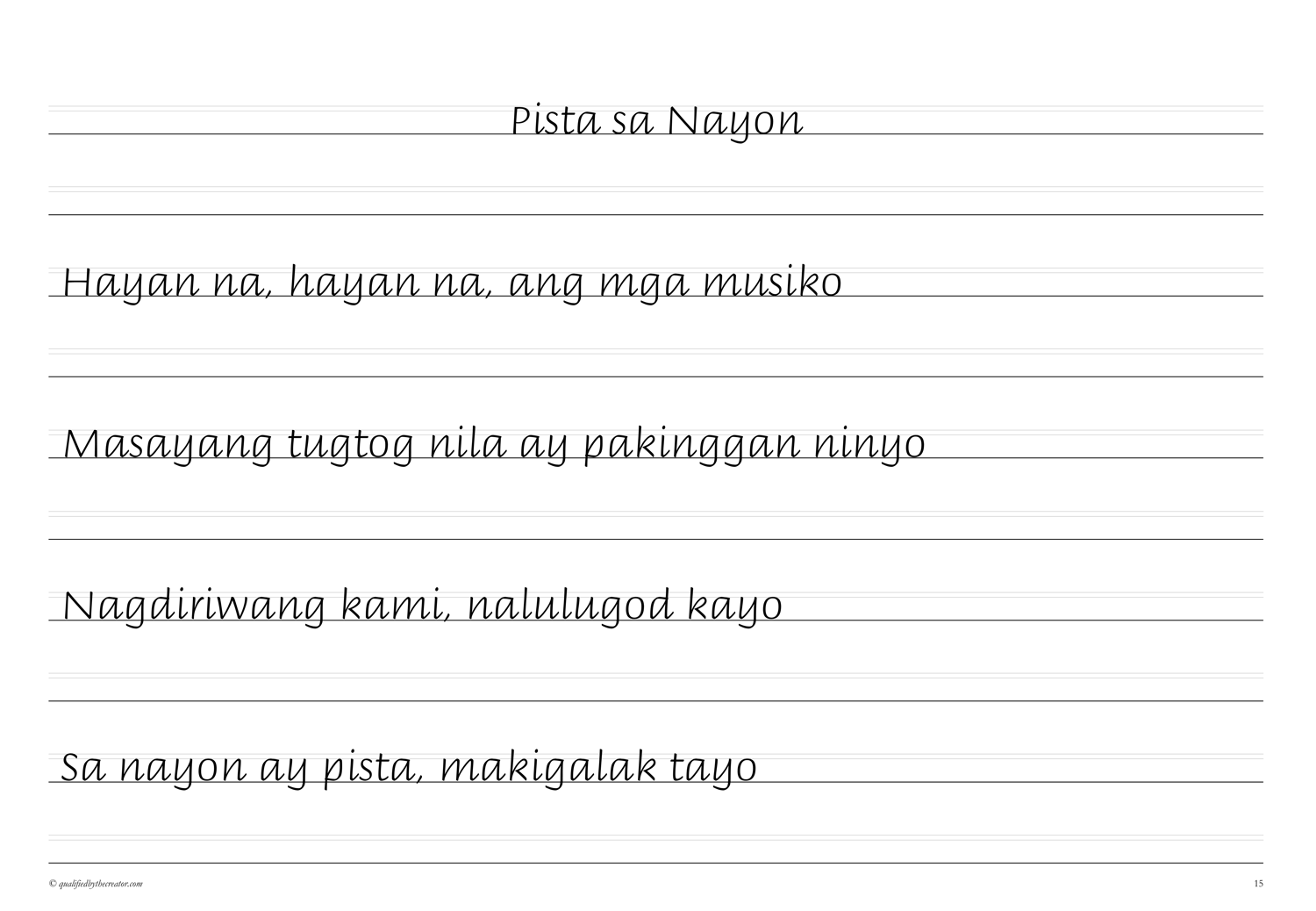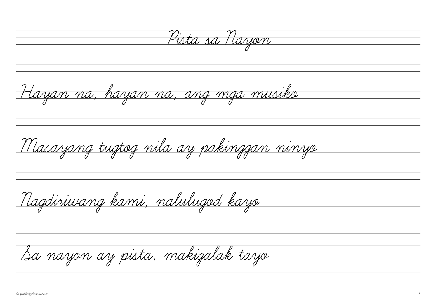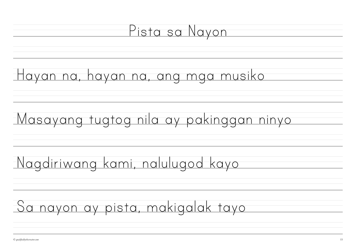 Filipino Copywork: Mga Awiting-Bayan 2