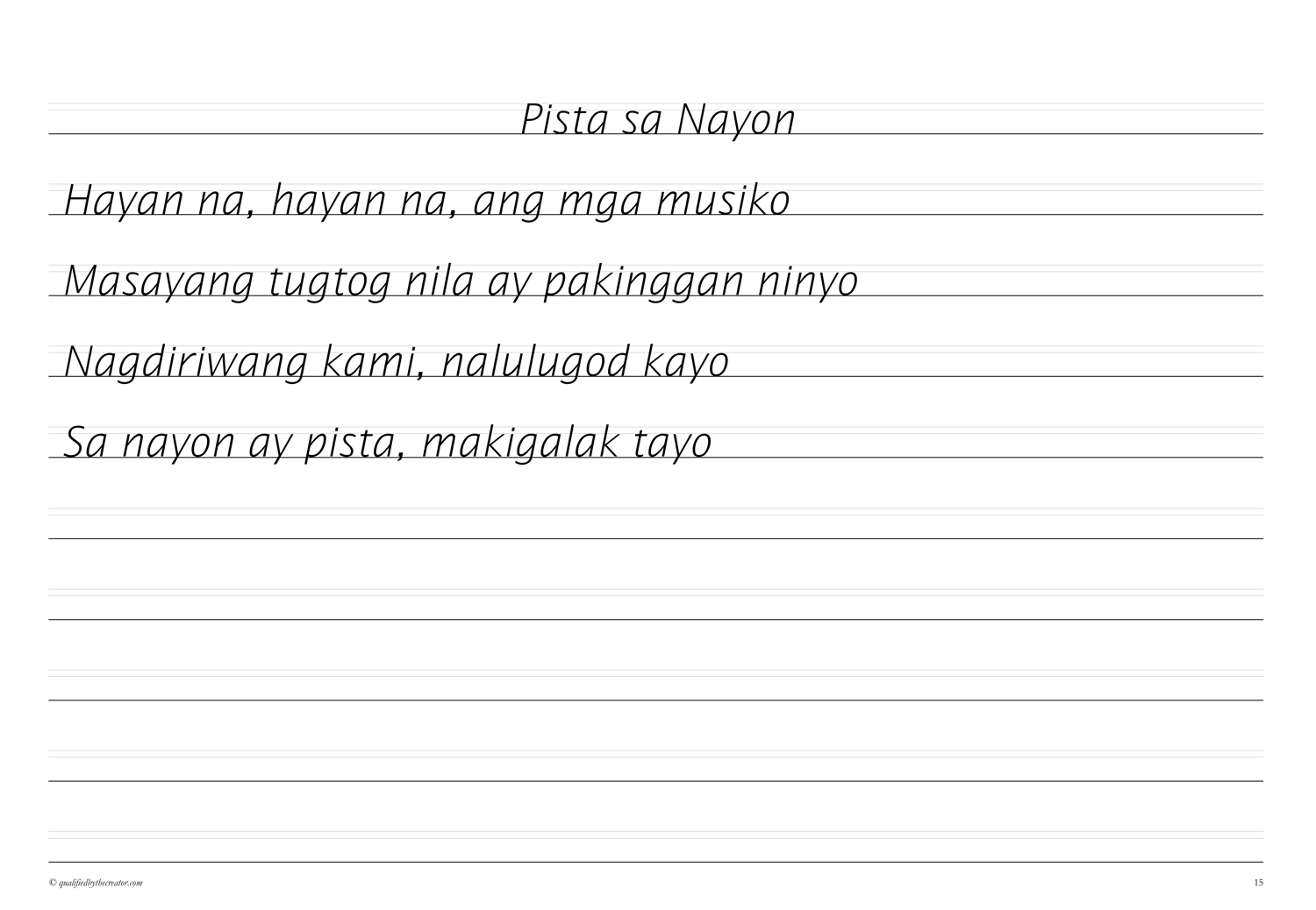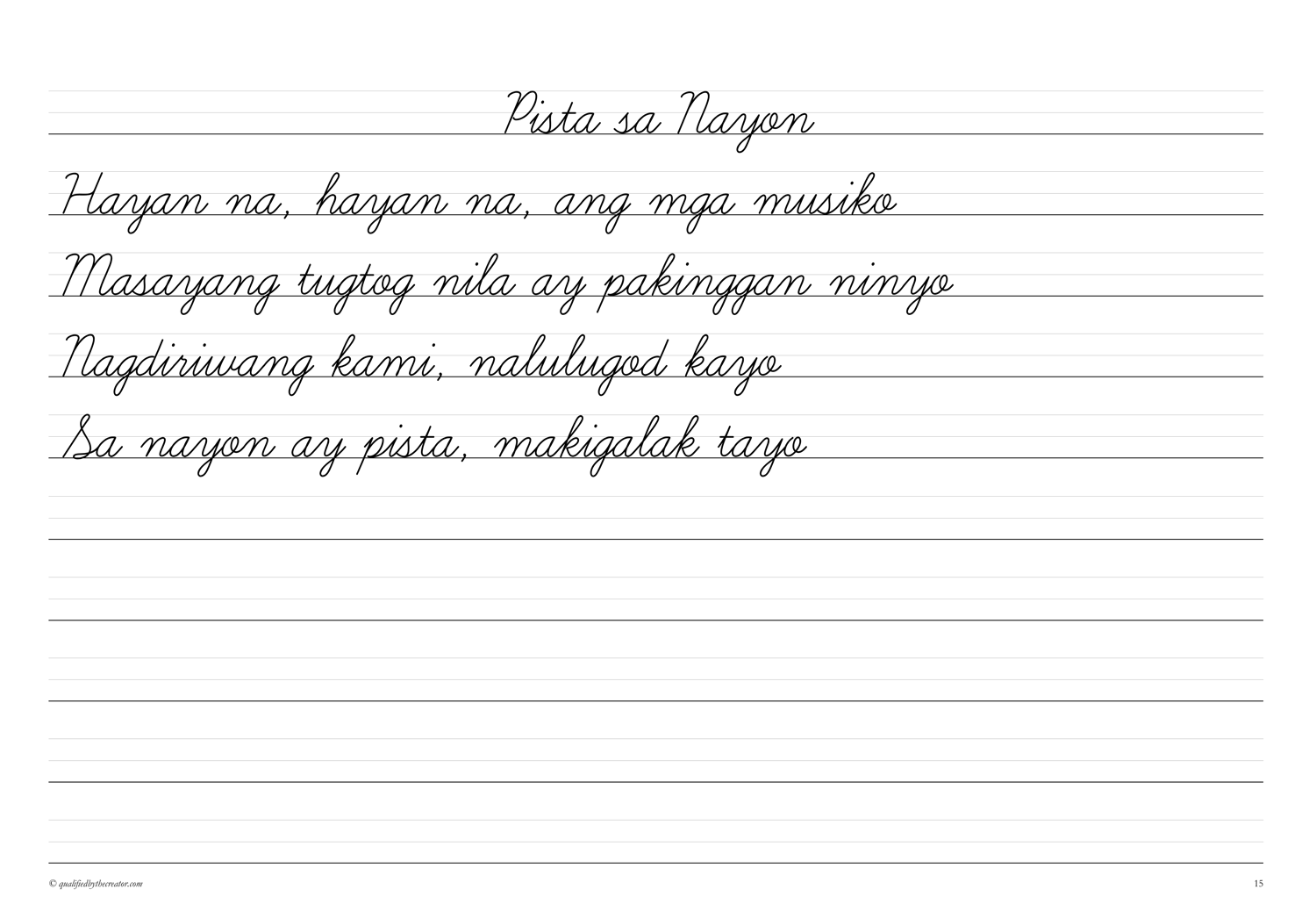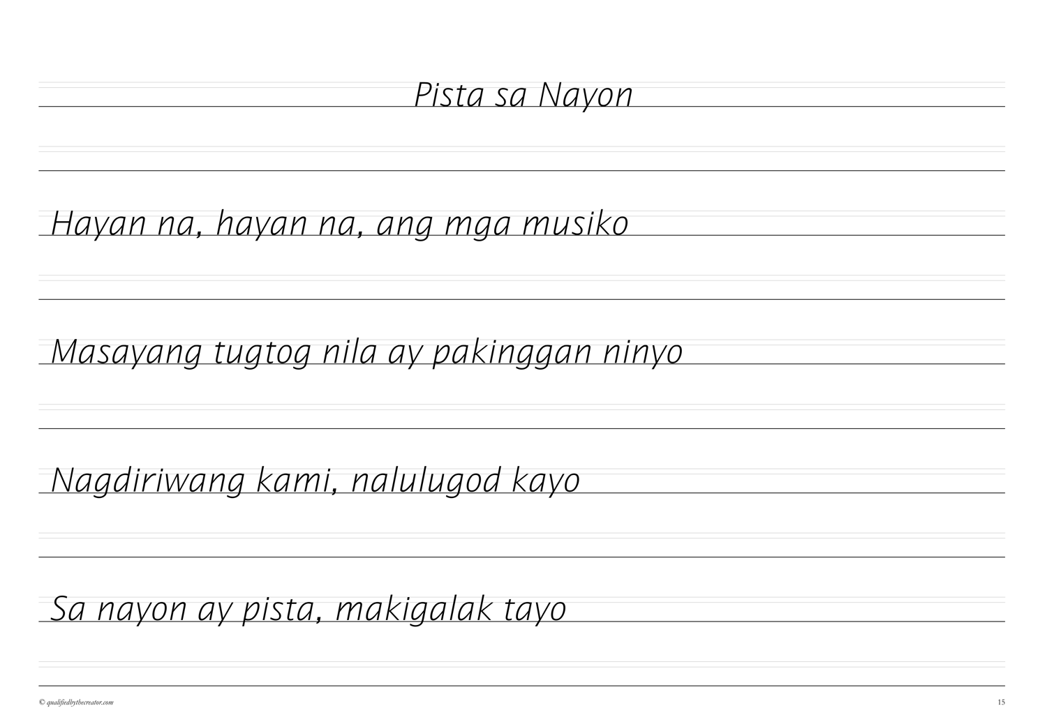 Filipino Copywork: Mga Awiting-Bayan 2