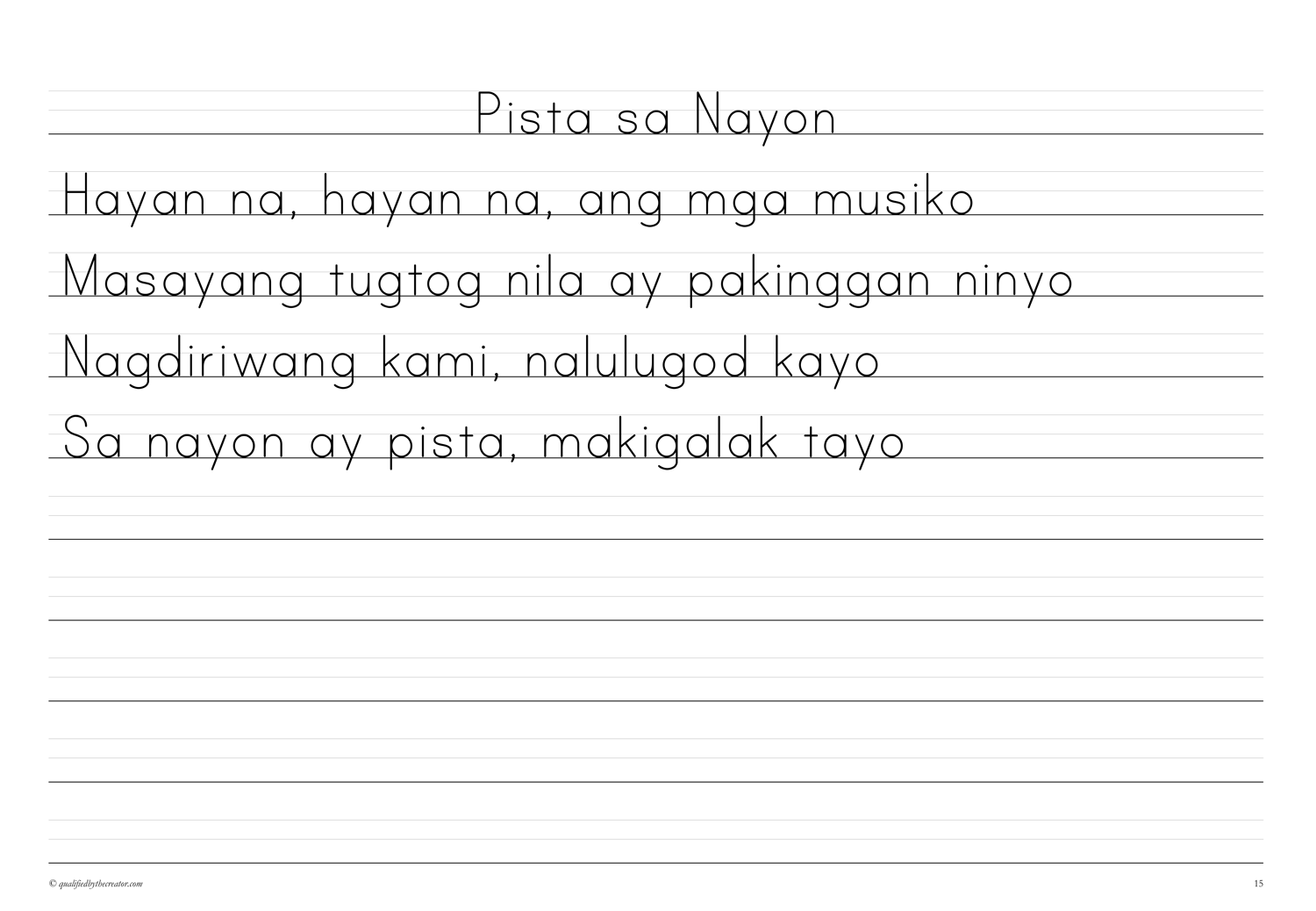 Make Copywork time a pleasure with this beautifully created, minimalist, print-and-go second Copywork volume of traditional Filipino folk songs.