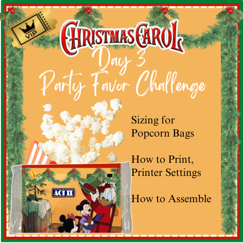 We will also focus on the sizing, printing, and assembly of the popcorn bag party favor being used in the Party Favor Challenge.