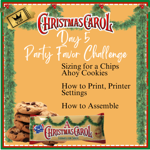 On this final day, we are going to focus on the sizing, printing, and assembly of the Chips Ahoy cookies party favor being used in the Party Favor Challenge.