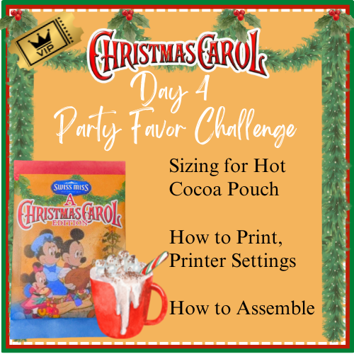 We will focus on the sizing, printing, and assembly of the hot cocoa packet party favor being used in the Party Favor Challenge.