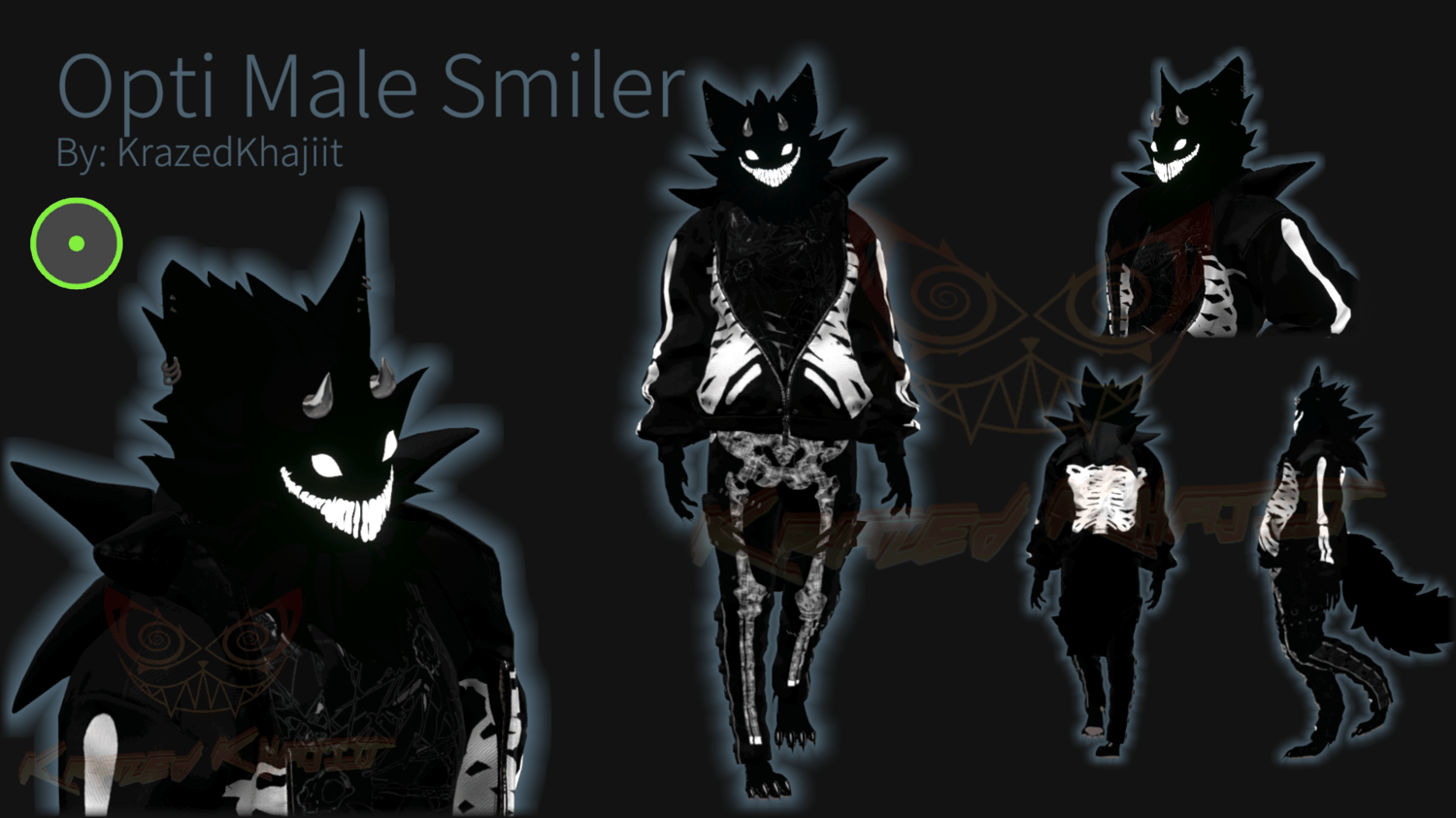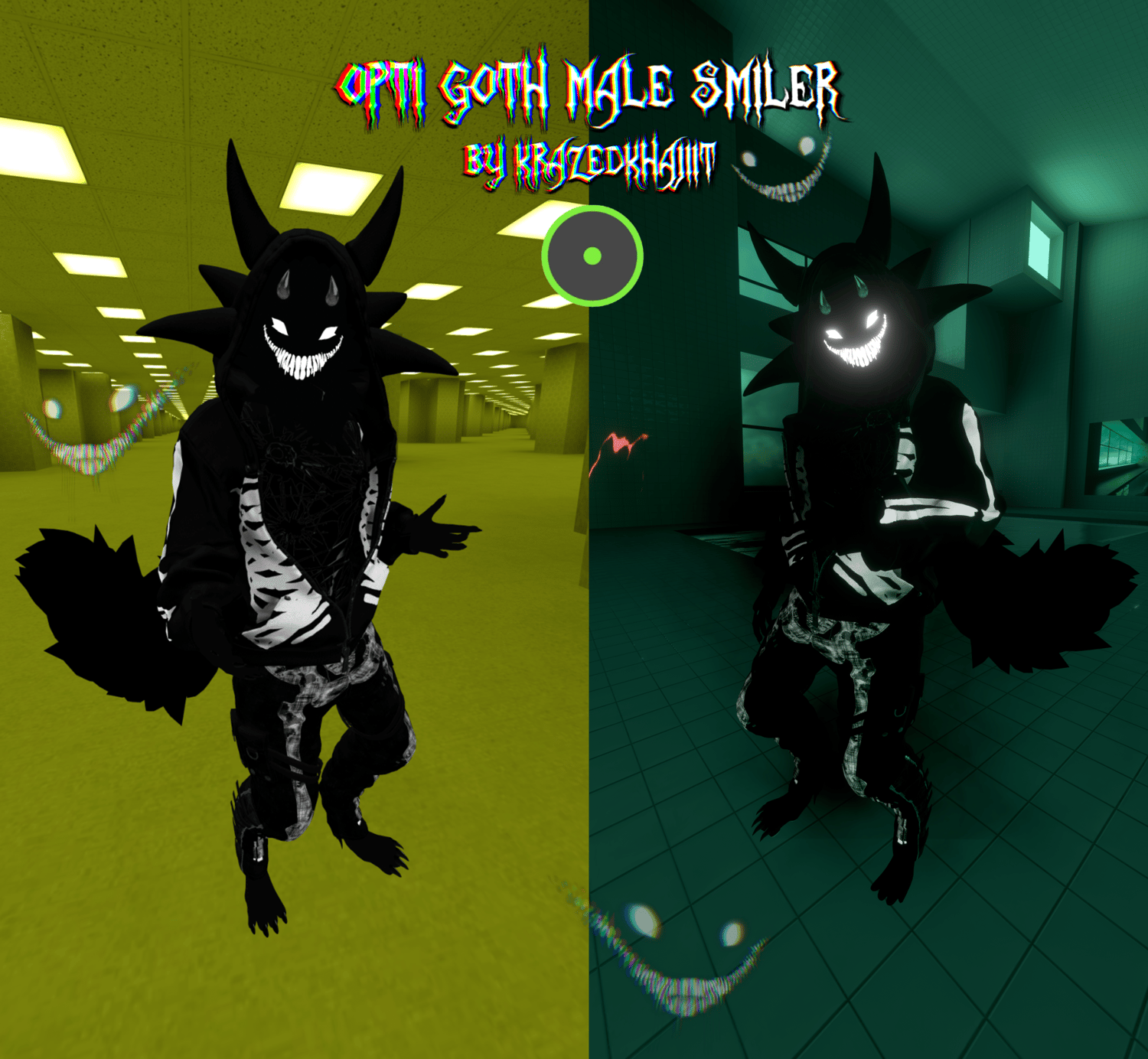 After many have inquired about my public Smiler avatar couple for personal use, I have decided to make my very first green rated optimized avatar! This avatar is more intended for events, clubs, and high population instances. Or just a simple goth aesthetic comfy optimized Smiler. I worked very hard to make this avatar possible. It's been heavily decimated, and lacks most of a body. As such I still intend on doing other Smiler projects later on with the body intact to make customization a breeze, and far less limiting.