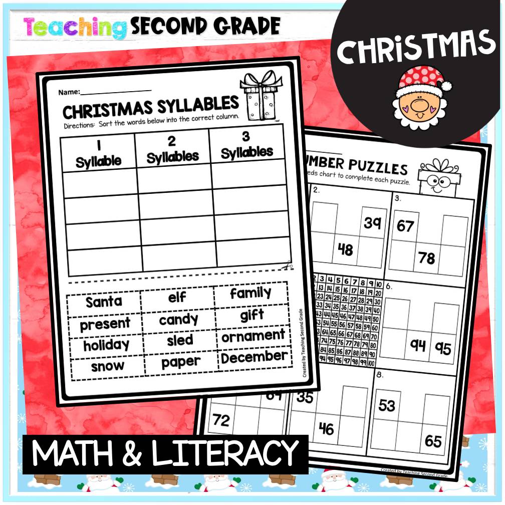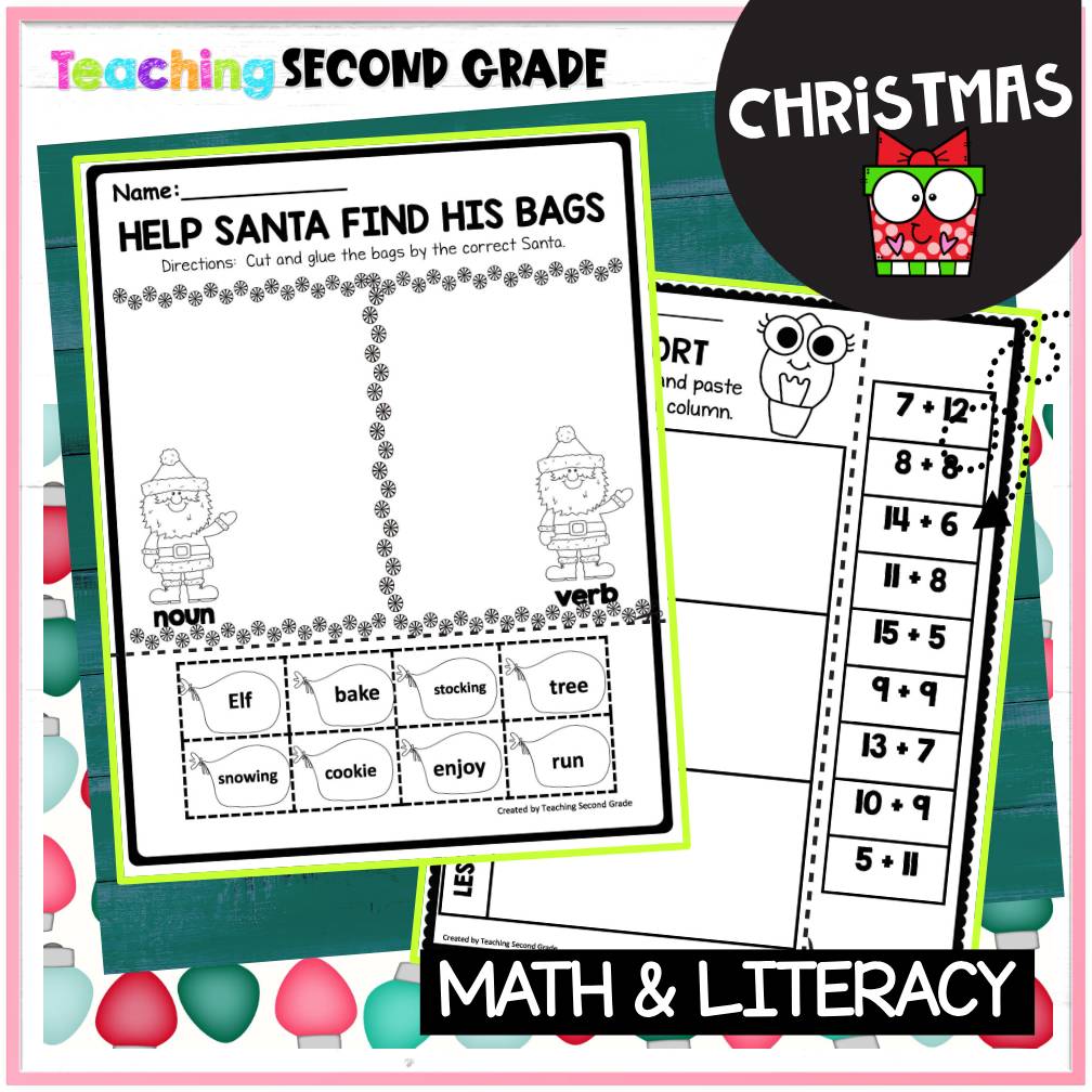 Christmas Worksheets No Prep Math and Literacy Activities Fun 1st 2nd Grade