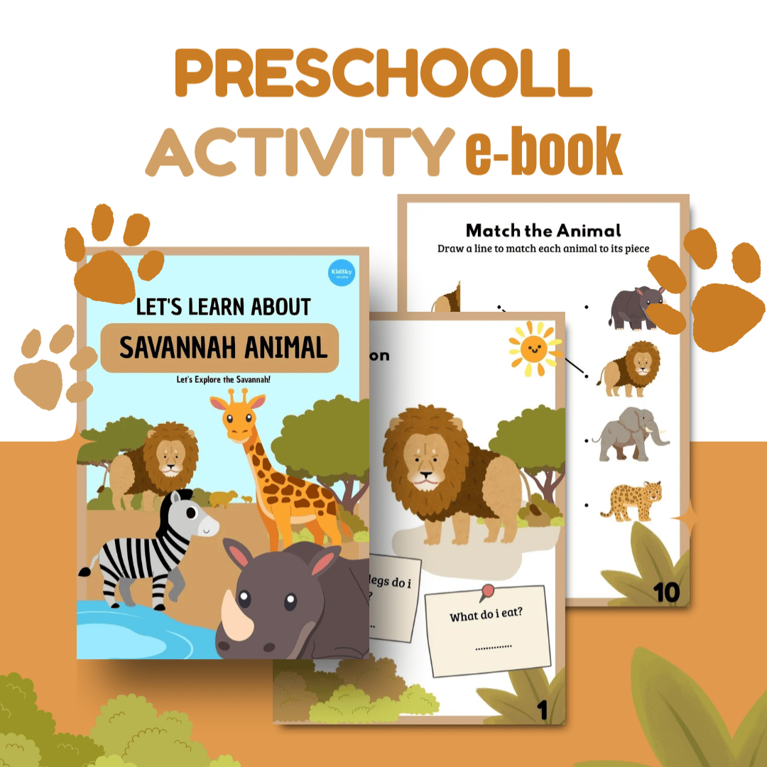 Discover the amazing animals that live in the savannah with this fun and educational 16-page printable activity book — perfect for kids aged 3 to 6!