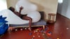 Christopher burst balloons and destroy inflatables