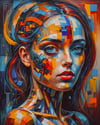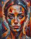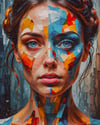 In a world where technology and humanity increasingly intertwine, these artworks explore the delicate balance between our organic essence and digital evolution. Each portrait represents a soul navigating through the mosaic of modern existence—an intricate blend of emotions, memories, and algorithms. The vibrant and fragmented pieces of color illustrate how identities are being reconstructed in the digital age, where each pixel symbolizes a piece of our personality influenced by the virtual realm. The work invites the viewer to reflect on how much of our true self remains intact as we continue to merge with the digital landscape.