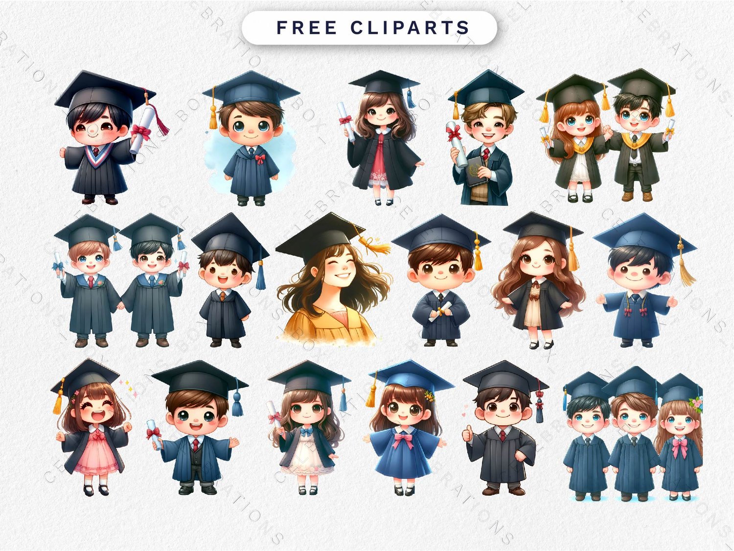 With the convenience of instant digital download, you can incorporate these captivating Graduation Graphics into your creations without delay. Whether you're a student, teacher, or proud family member, our Graduation Clipart collection offers endless possibilities for celebrating this significant milestone.