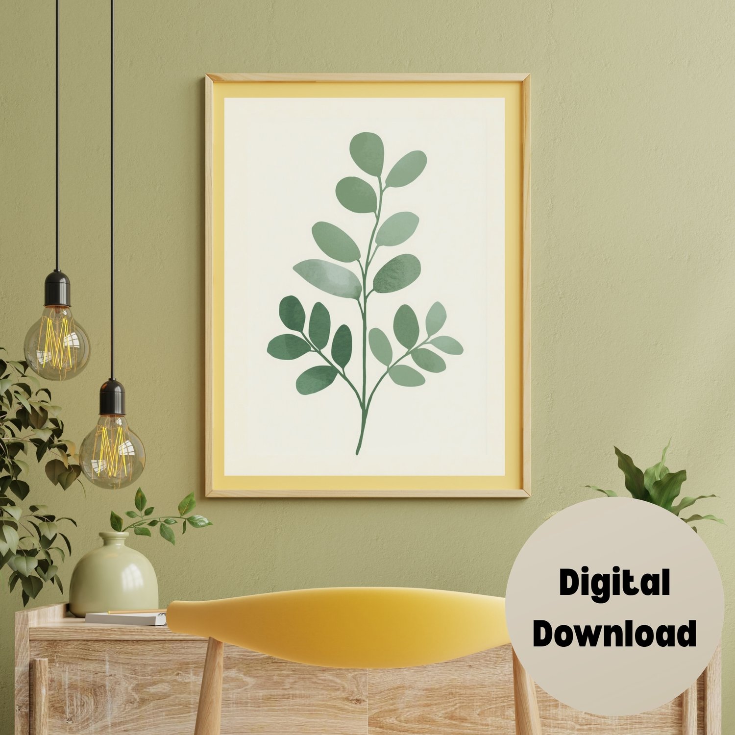 Add a touch of calm and natural elegance to your space with this minimalist eucalyptus botanical illustration. Designed with soft green tones and a clean, simple composition, this artwork brings a refreshing and soothing atmosphere to any room.