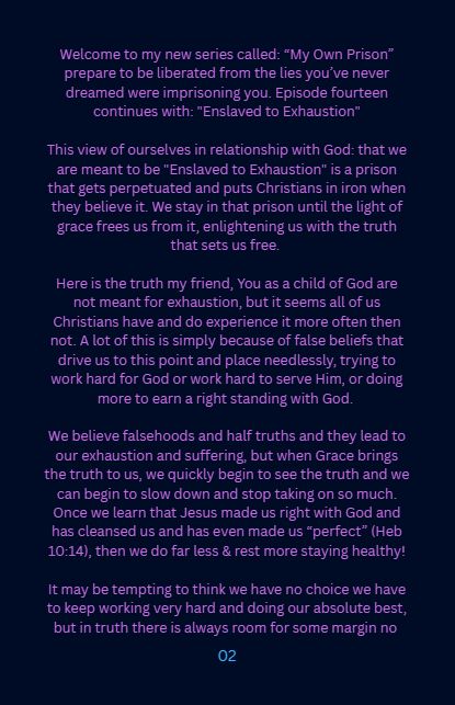 Author Timothy Virge's Devotional series: My Own Prison Episode Fourteen: "Enslaved to Exhaustion"