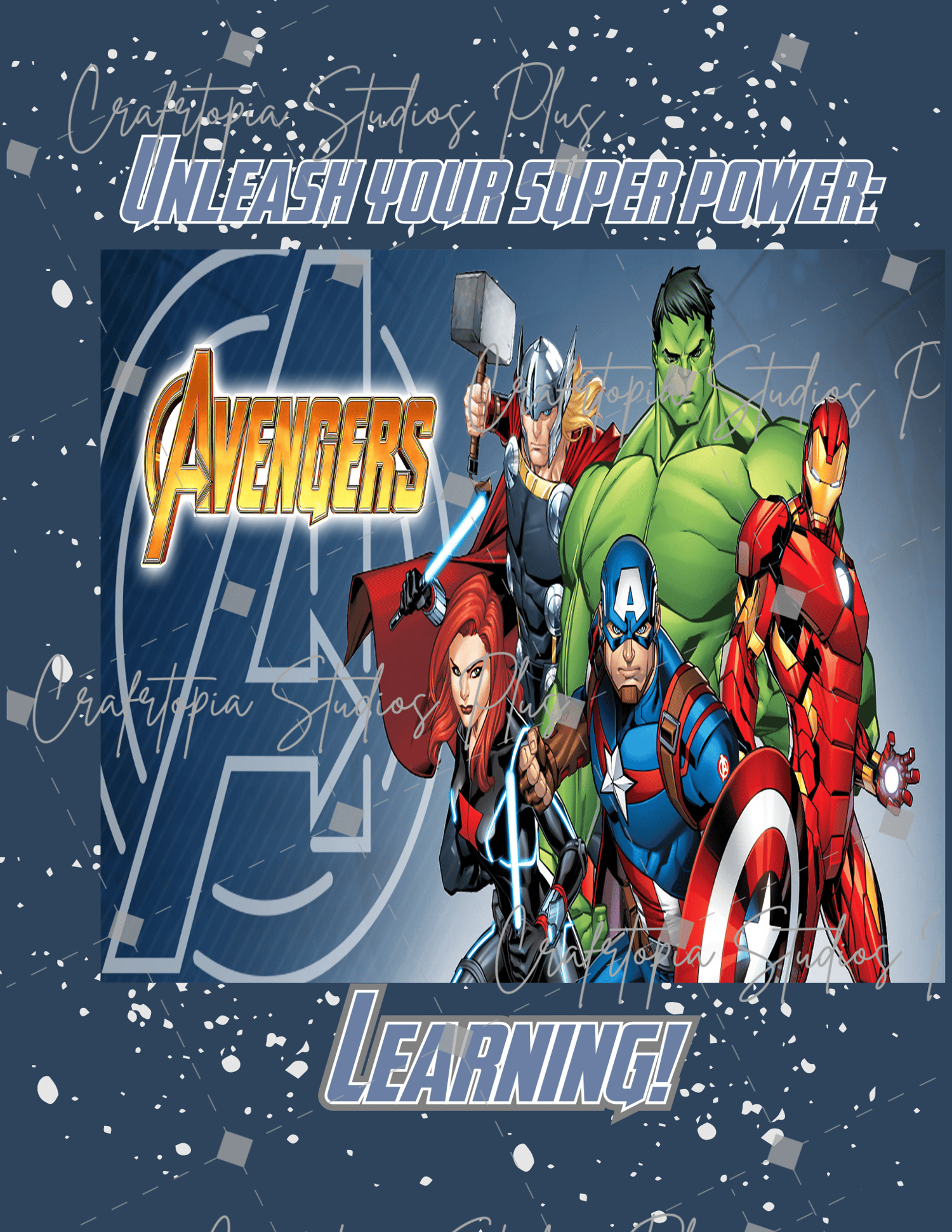 Unleash the power of knowledge with these Avengers-inspired notebook covers! Perfect for Marvel fans and aspiring superheroes alike, this digital download includes three dynamic designs that bring the excitement of the Marvel Universe to your school supplies. Each cover features your favorite Avengers in action, ready to inspire you to be an academic Avenger and conquer the school year with superpowers.