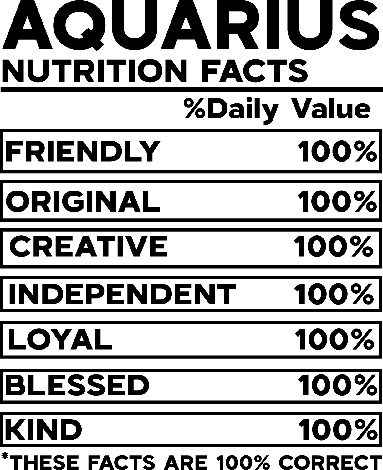 Show the unique, visionary energy of an Aquarius with this “Aquarius Nutrition Facts” design. Bold, different, and creative — just like them.