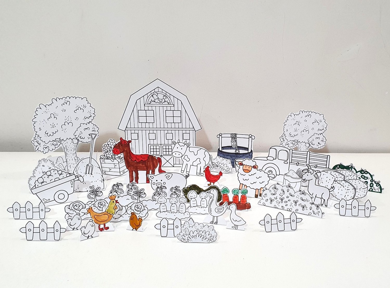 ✿ Just color & cut out farm details like a barn and adorable animals like cows, pigs, sheep, and chickens, then set up your very own farm diorama.