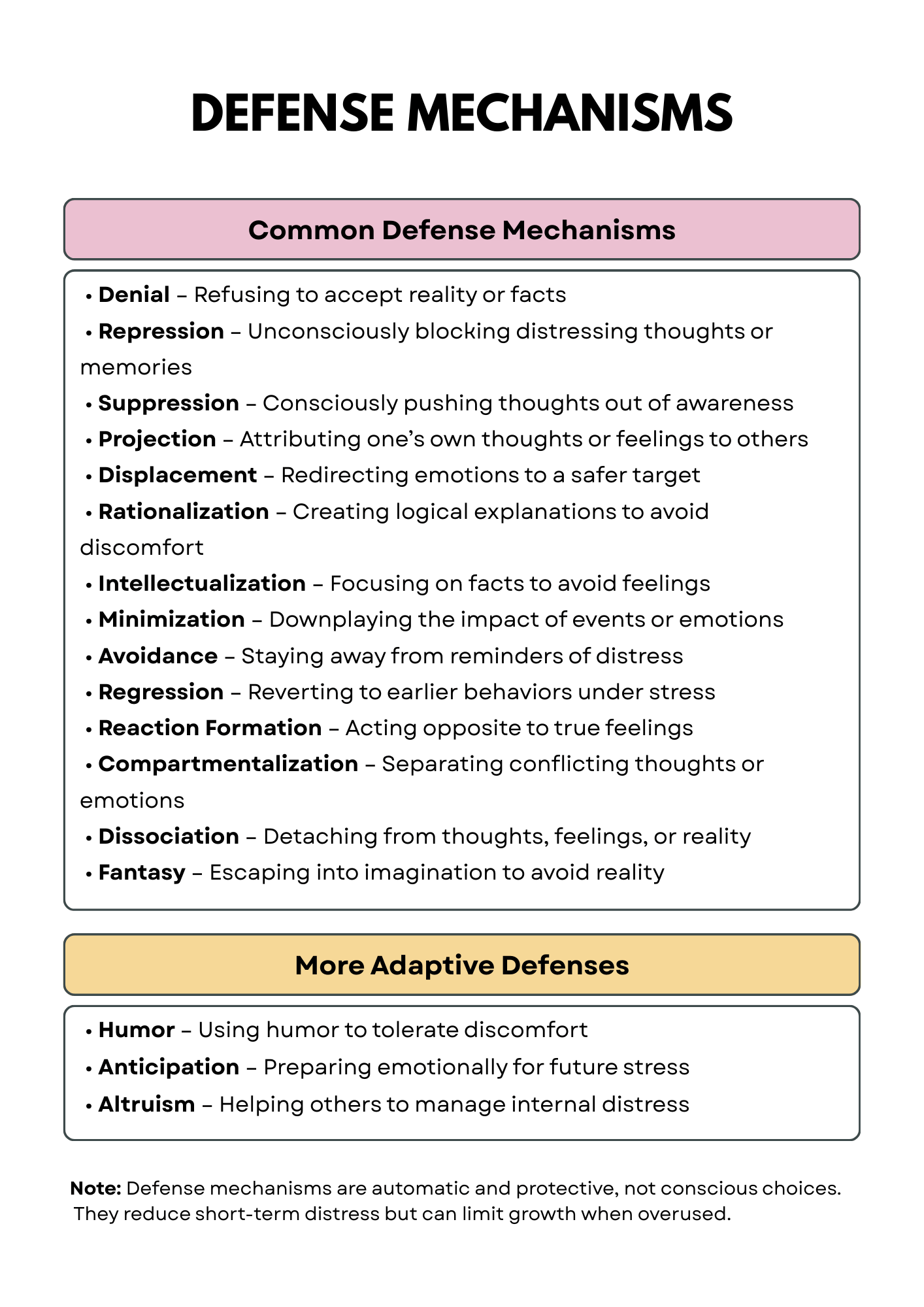 - Avoidance and Defenses