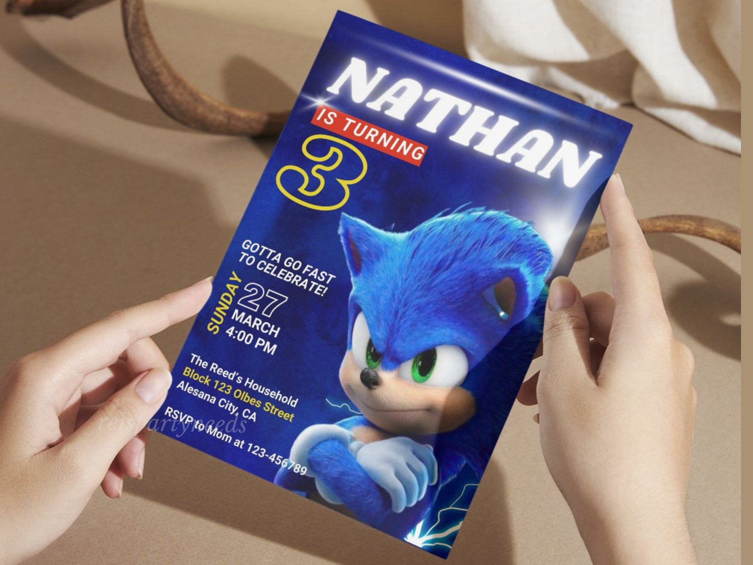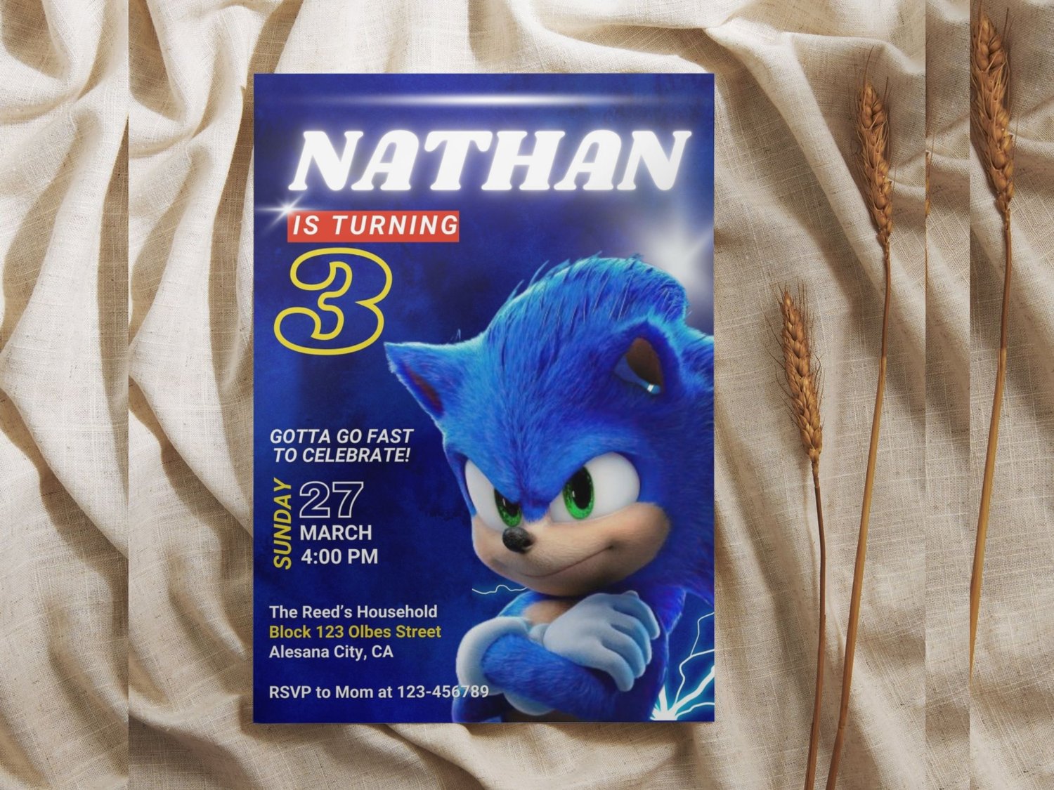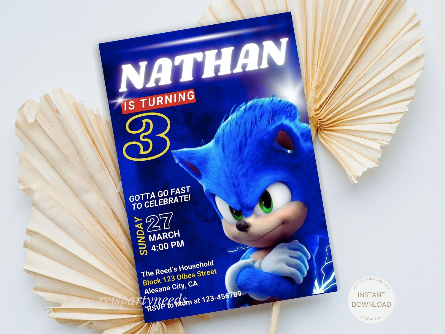 This Blue Sonic themed invitation is perfect for your occasion!
