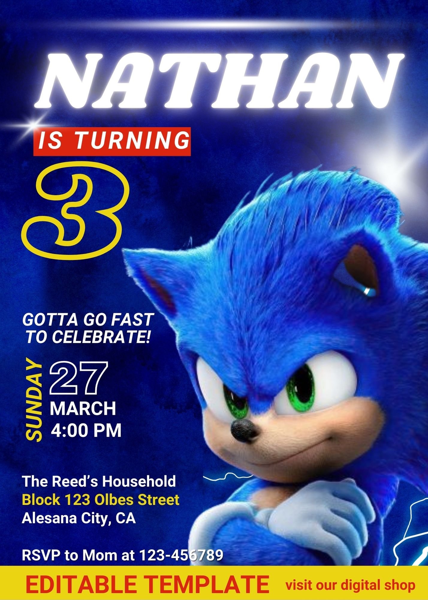 Sonic Birthday Invitation, Super Hedgehog Boys Party Invite, Super Sonic Party Invitation, Editable Sonic Invite Template, Canva Template, Sonic the Hedgehog Birthday Party