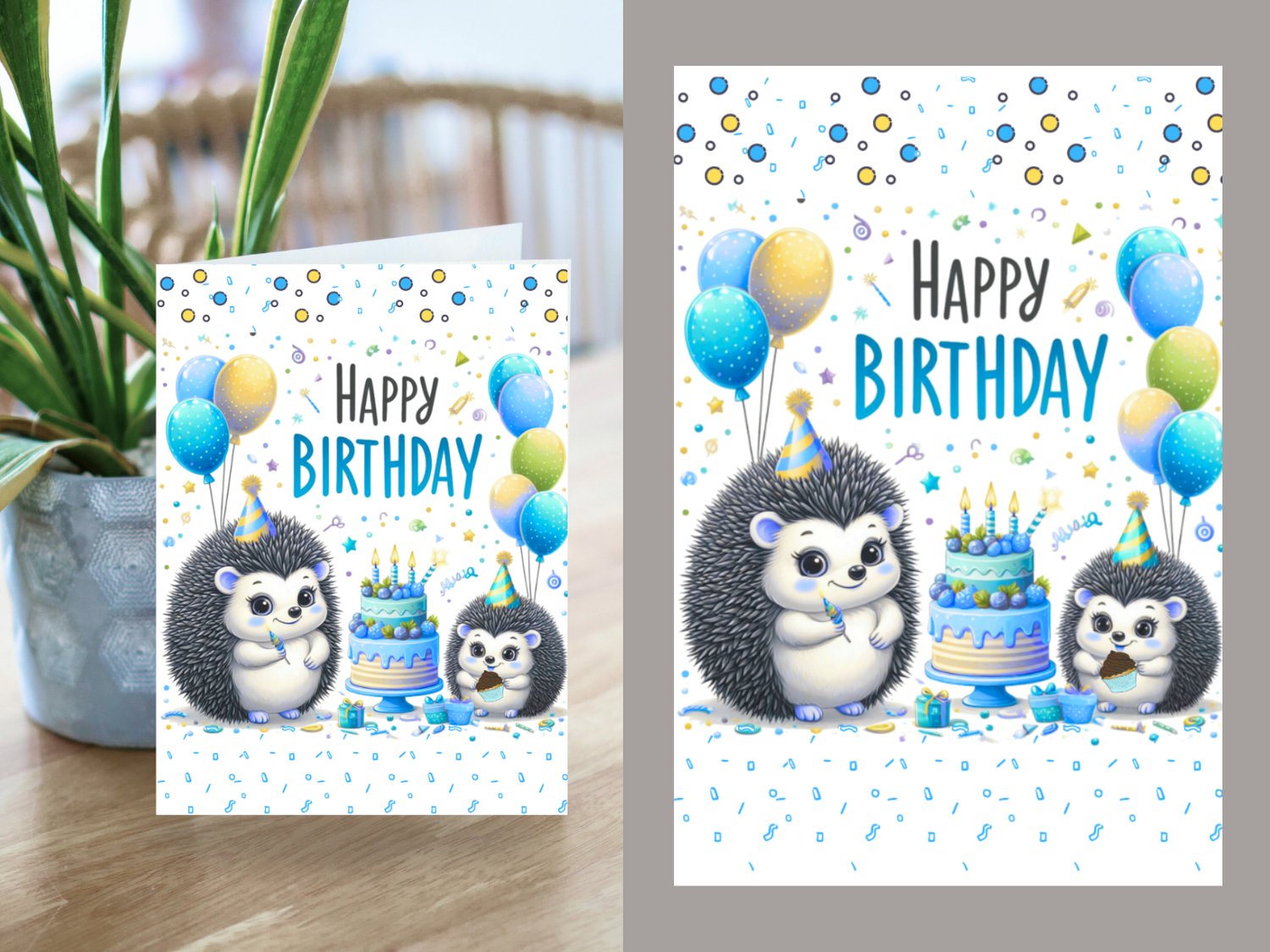 Cute Porcupine Birthday Card – Printable Folded Card for Kids or Adults
