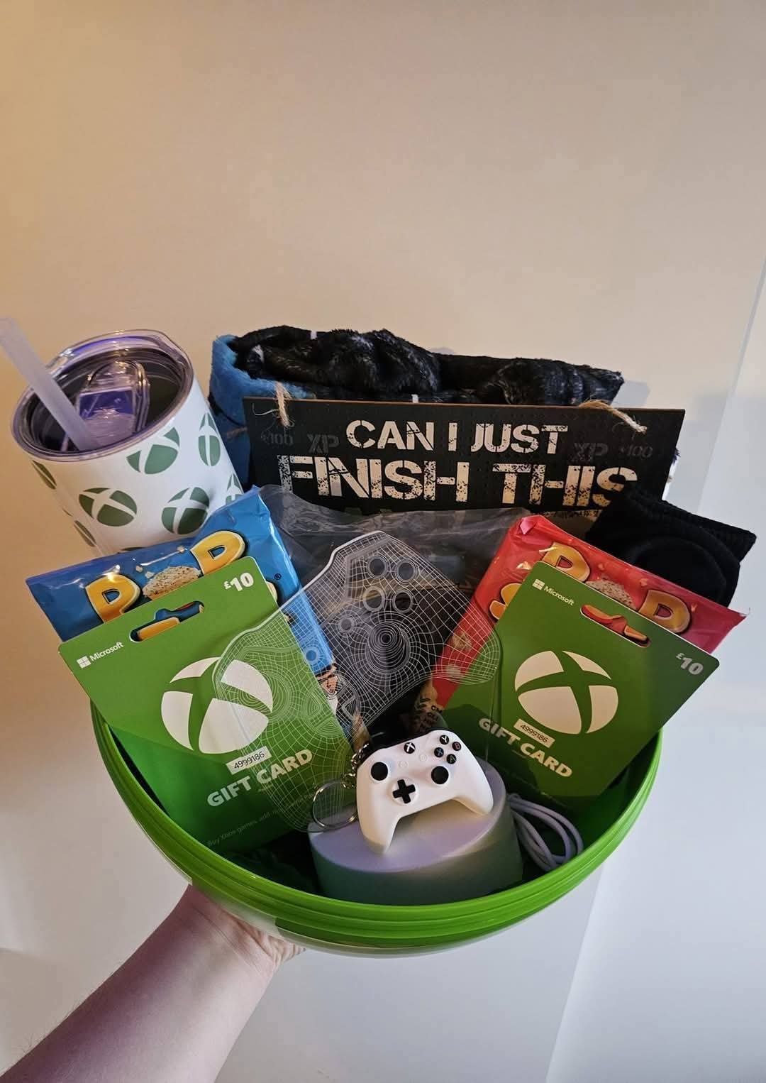 Level up gift-giving with this Themed surprise egg, perfect for any gamer! This giant egg, personalised with a name and Xbox controller design, opens to reveal a curated collection of gaming essentials and treats.