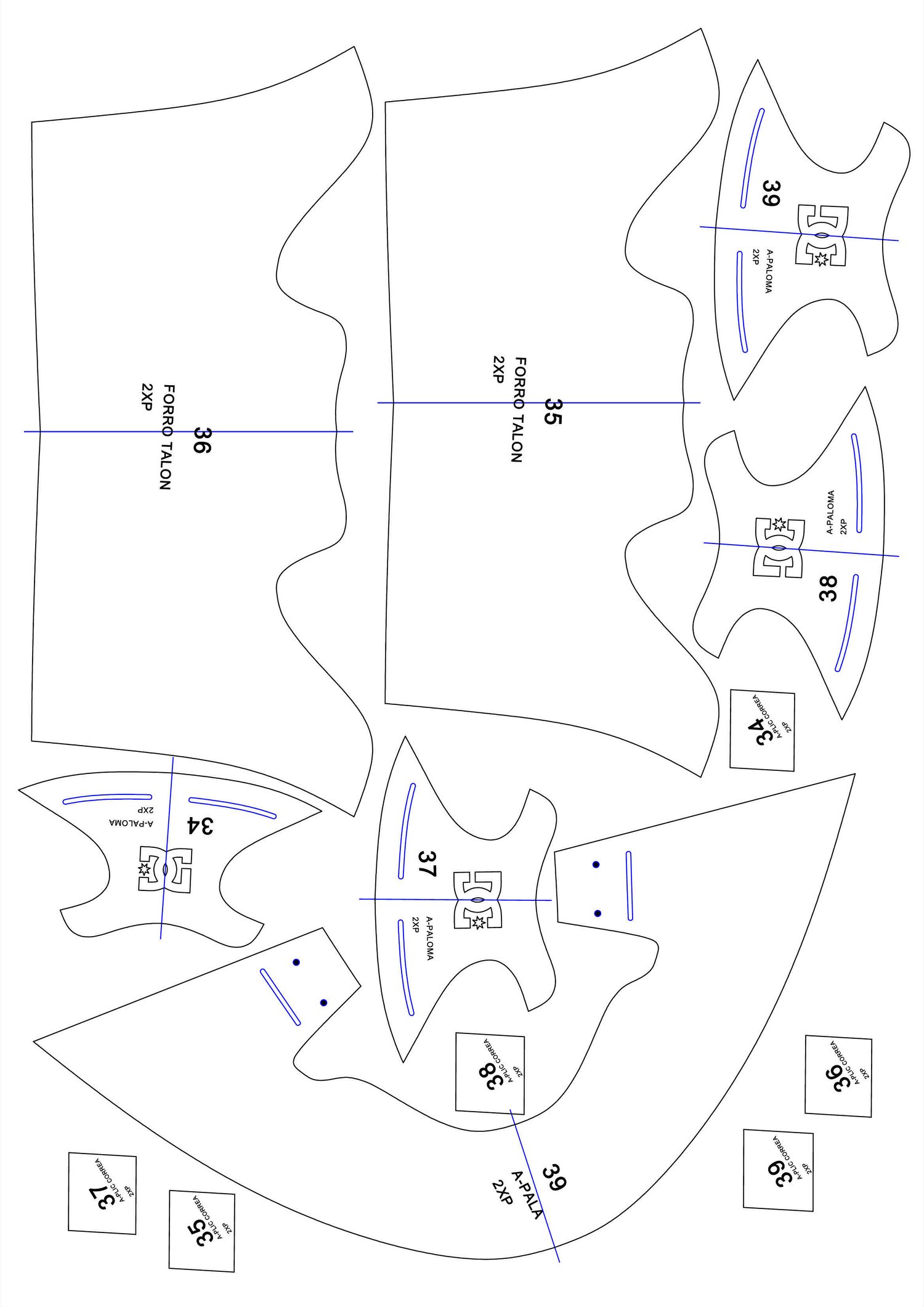 patrones en PDF hoja A3 Y A4 conprimido WinRar, serie del 34 AL 39.