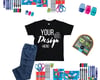 T-shirt colors included are Black, Blue, Heather Grey, Kelly, Light Blue, Light Pink, Navy, Pink, Red, White.