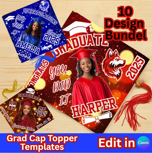 Celebrate your GRAD with these Cap Topper Templates. These vibrant, personalized templates add creativity and fun to your transactions. Each can be customized to reflect the birthday person's unique personality.