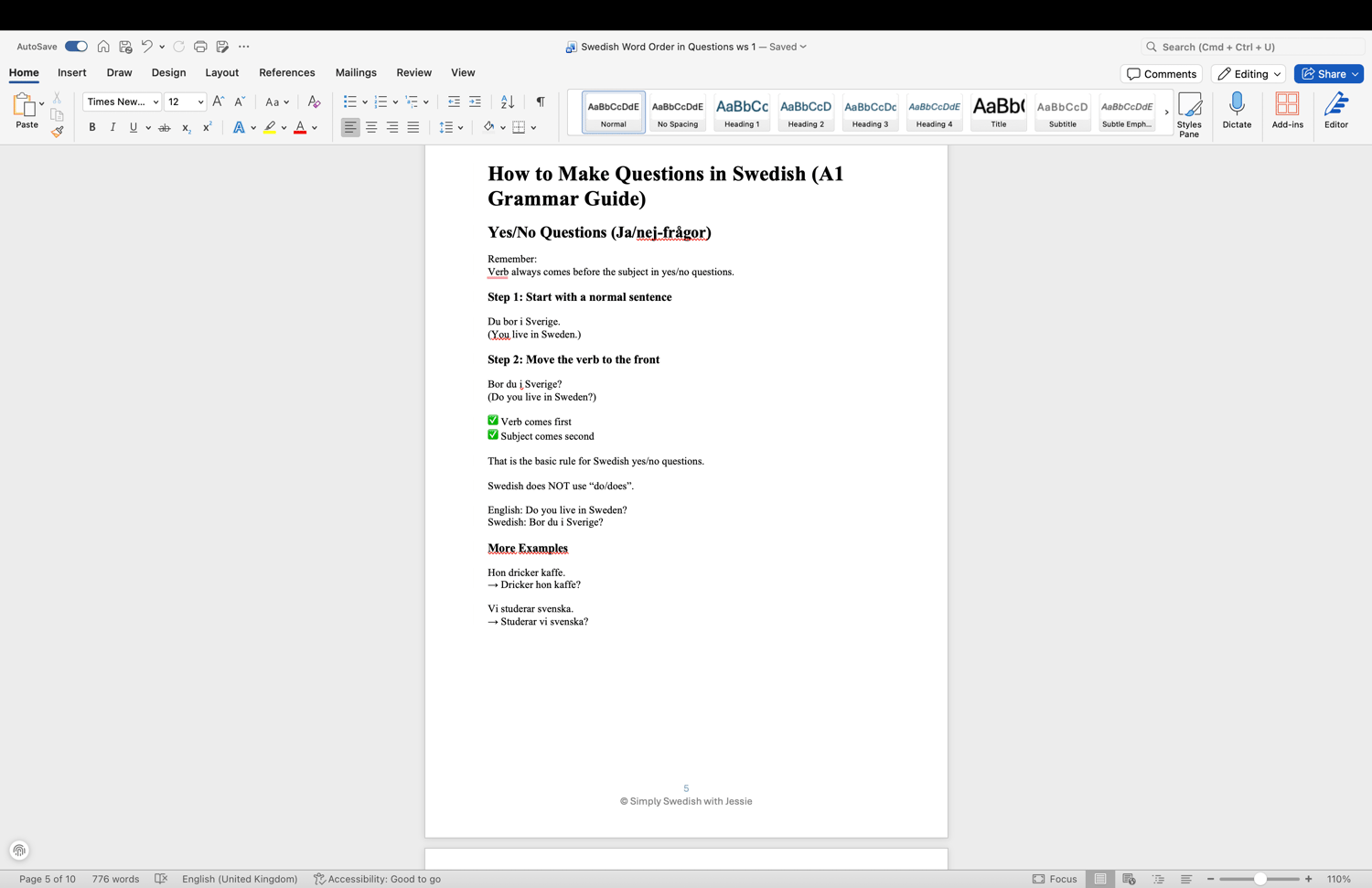 Swedish Word Order in Questions – A1 Grammar & Practice Worksheet Swedish Word Order in Questions – A1 Grammar & Practice Worksheet