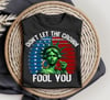 This unapologetic “Don’t Let the Crown Fool You” design reimagines Lady Liberty with bold brows, big hoops, and Black girl energy. Set against a distressed American flag backdrop, this design is the ultimate statement piece for those who stand for freedom, strength, and truth.