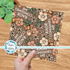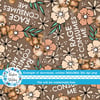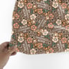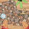 Grumpy teddy bears and flowers on tan.